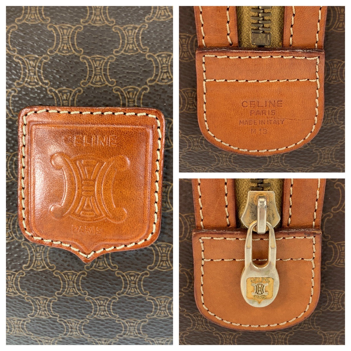 CELINE Handbag M13 PVC, Leather Brown Gold Metal Handbag Boston Duffel bag Macadam Macadam Women Used Authentic
