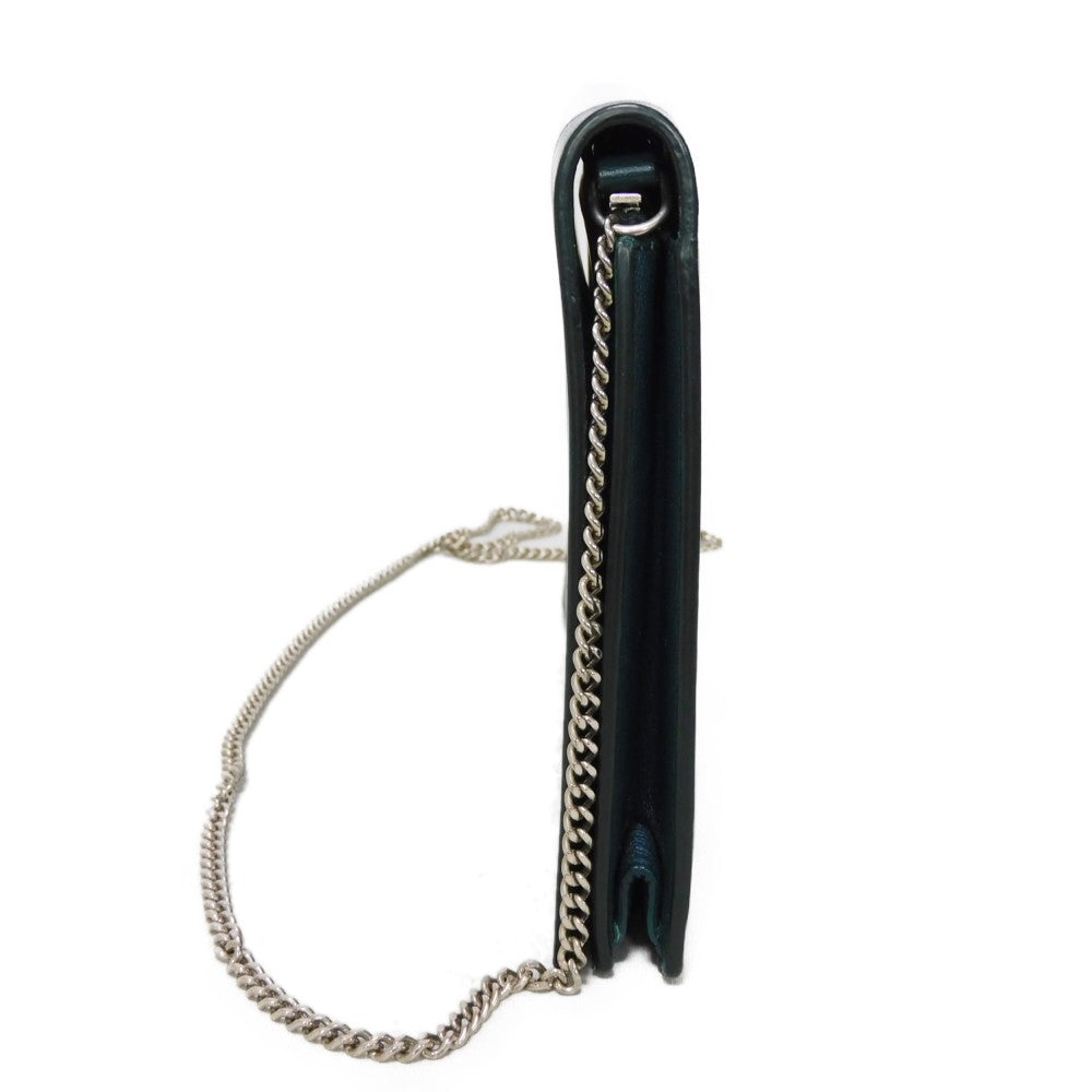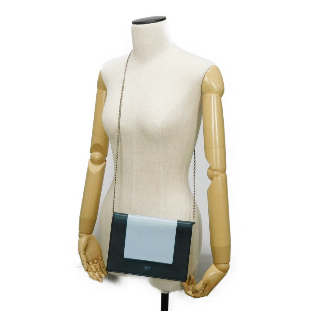 CELINE Shoulder Bag 107773 Smooth lambskin Light blue x dark green ChainShoulder Bag 2WAY Clutch Bag Old logo FRAME Evening Chain Wallet Women Used Authentic