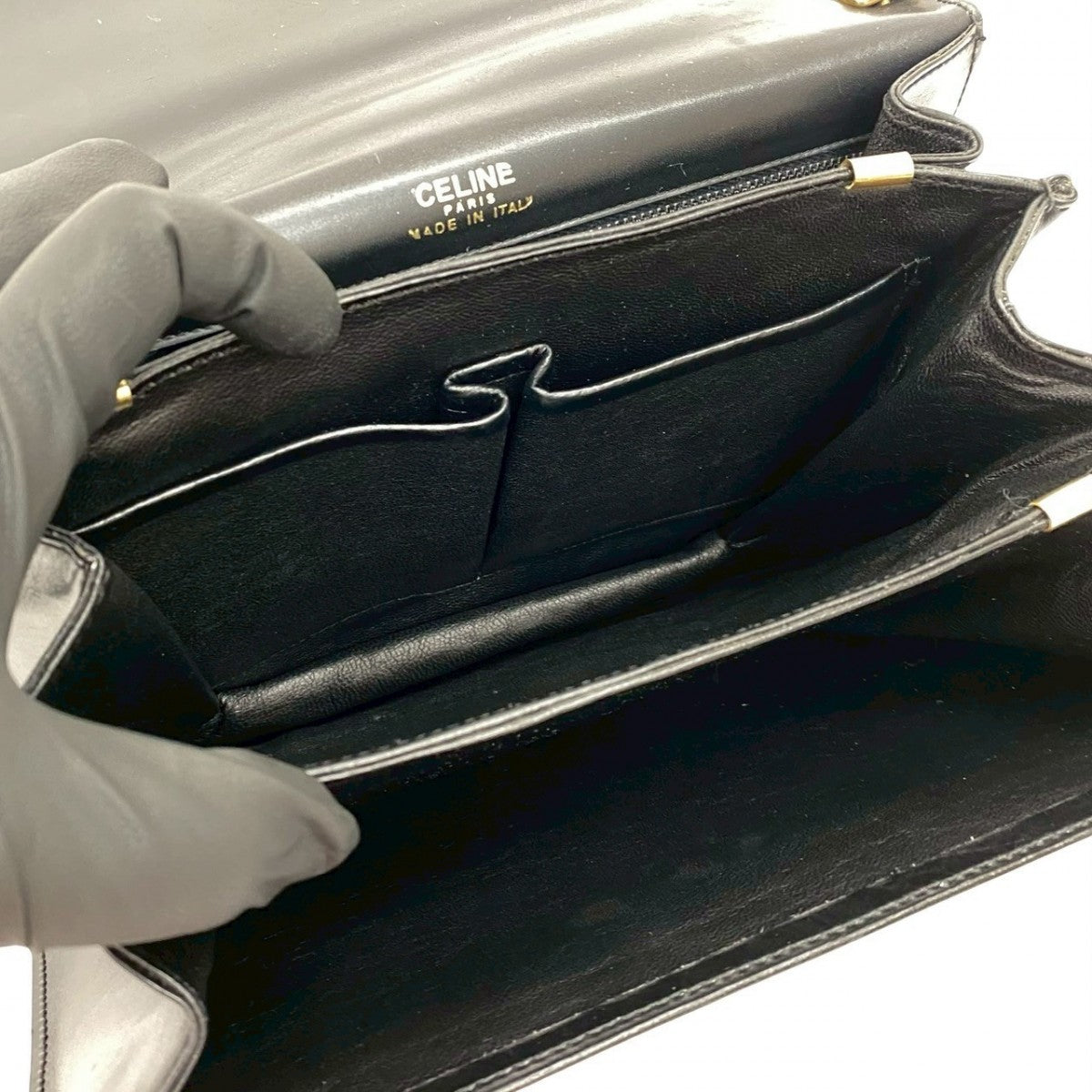 CELINE Shoulder Bag Calfskin, Leather black logo Metal Women Used Authentic