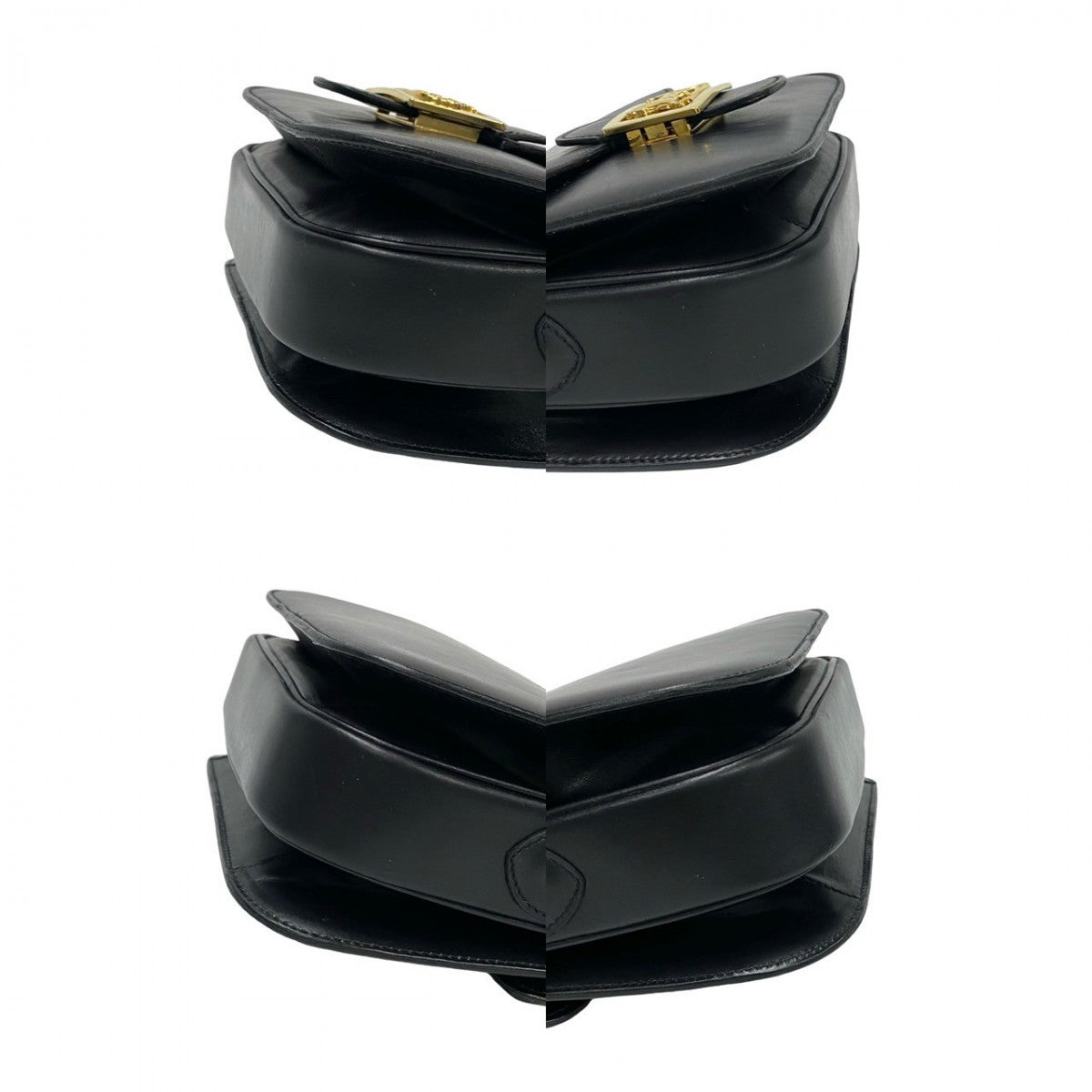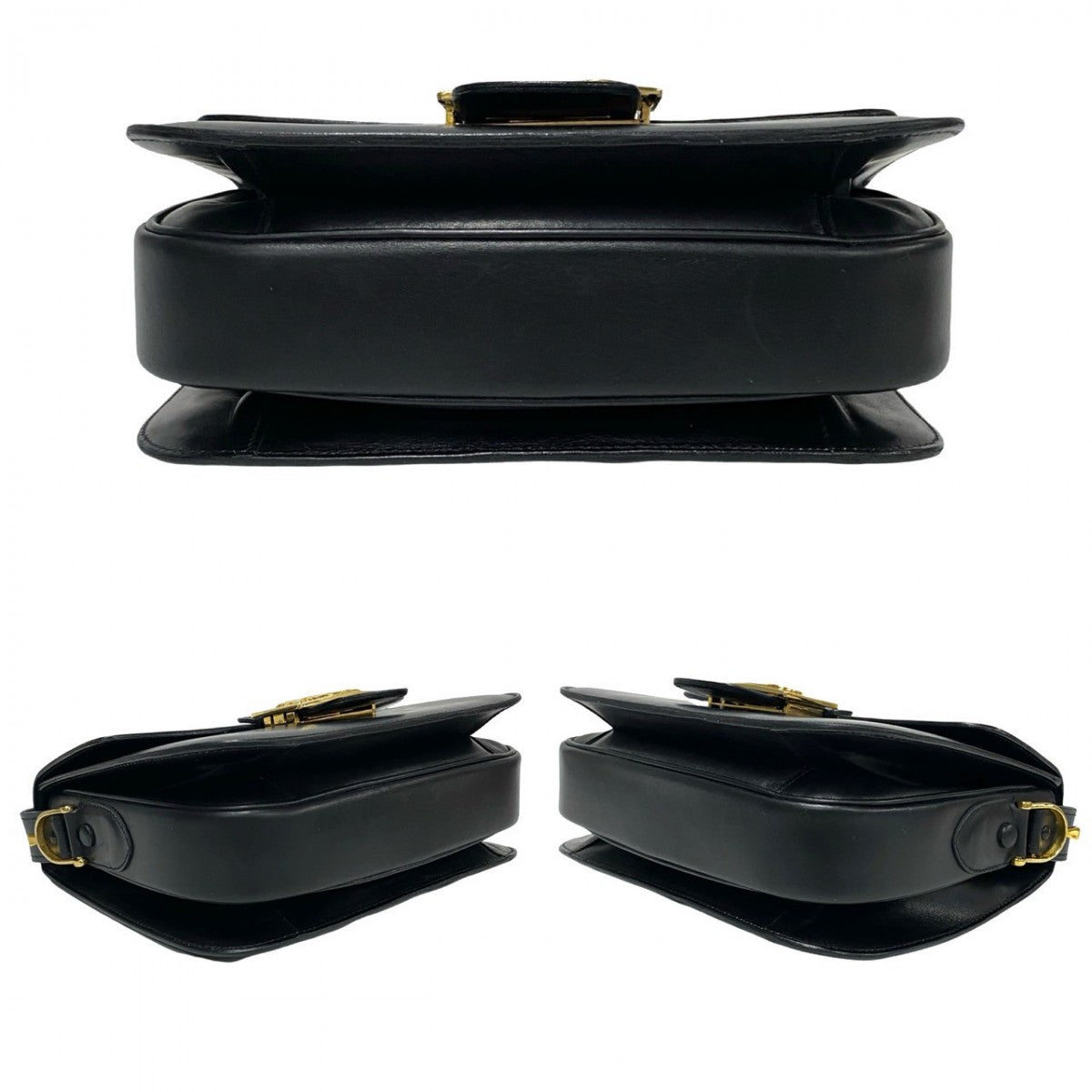 CELINE Shoulder Bag Calfskin, Leather black logo carriage Metal Women Used Authentic