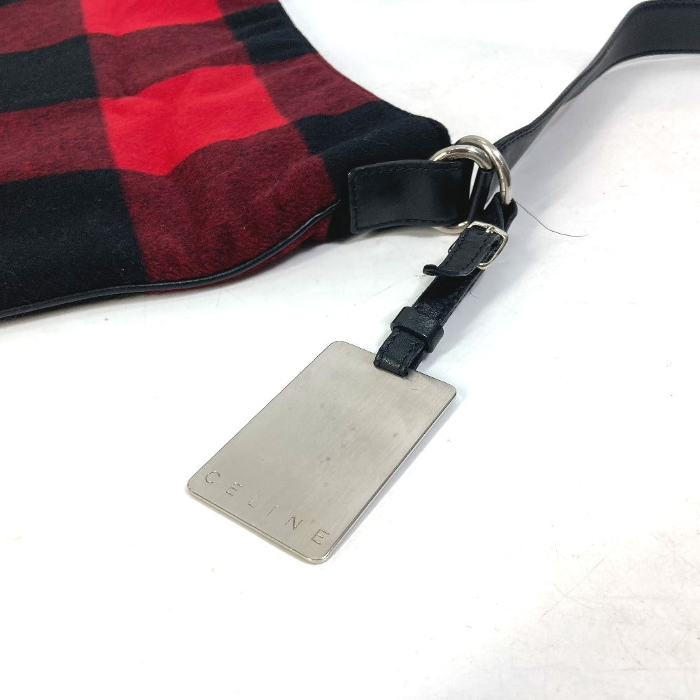 CELINE Shoulder Bag Cotton, Leather Red check Women Used Authentic
