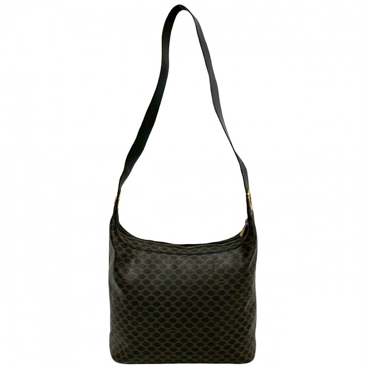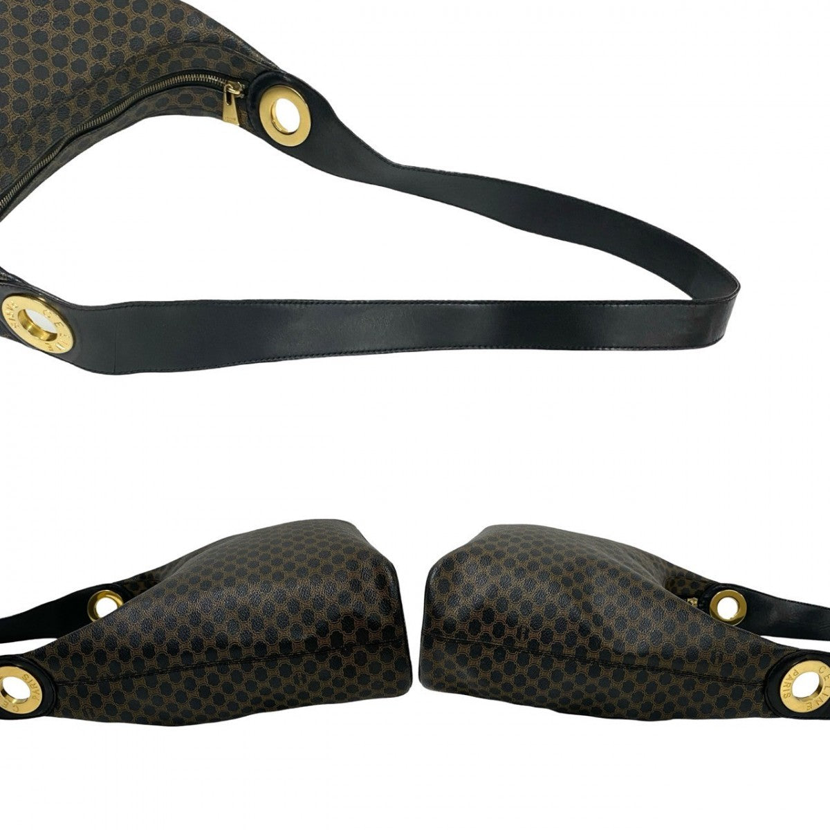 CELINE Shoulder Bag Leather, PVC black Macadam Blazon Triomphe Pattern Circle Logo Metal Women Used Authentic