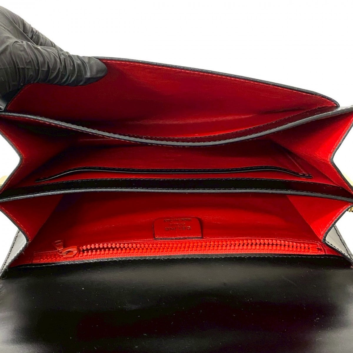 CELINE Shoulder Bag leather black Star Ball logo Metal Women Used Authentic