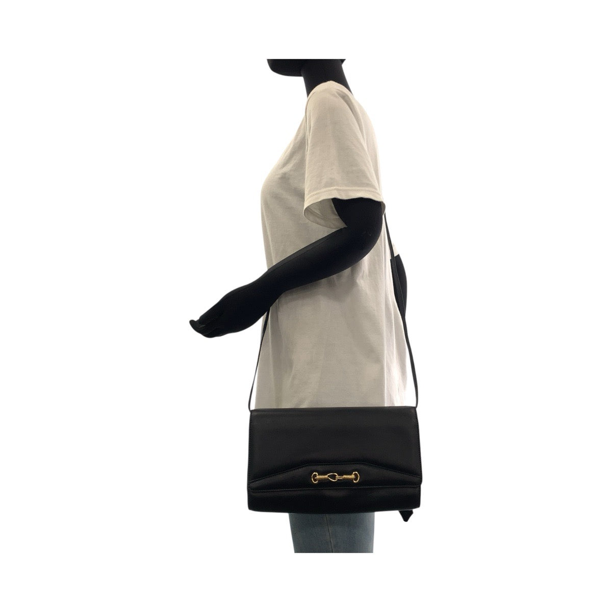 CELINE Shoulder Bag leather black Shoulder Bag Clutch bag 2way Women Used Authentic