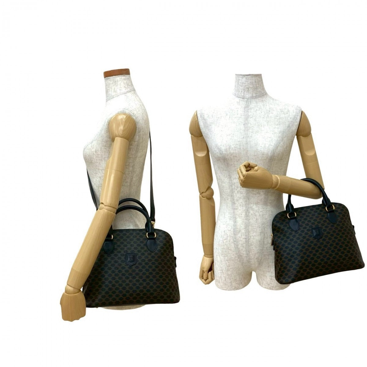 CELINE Shoulder Bag Leather, PVC black Macadam Blason logo Pattern Women Used Authentic