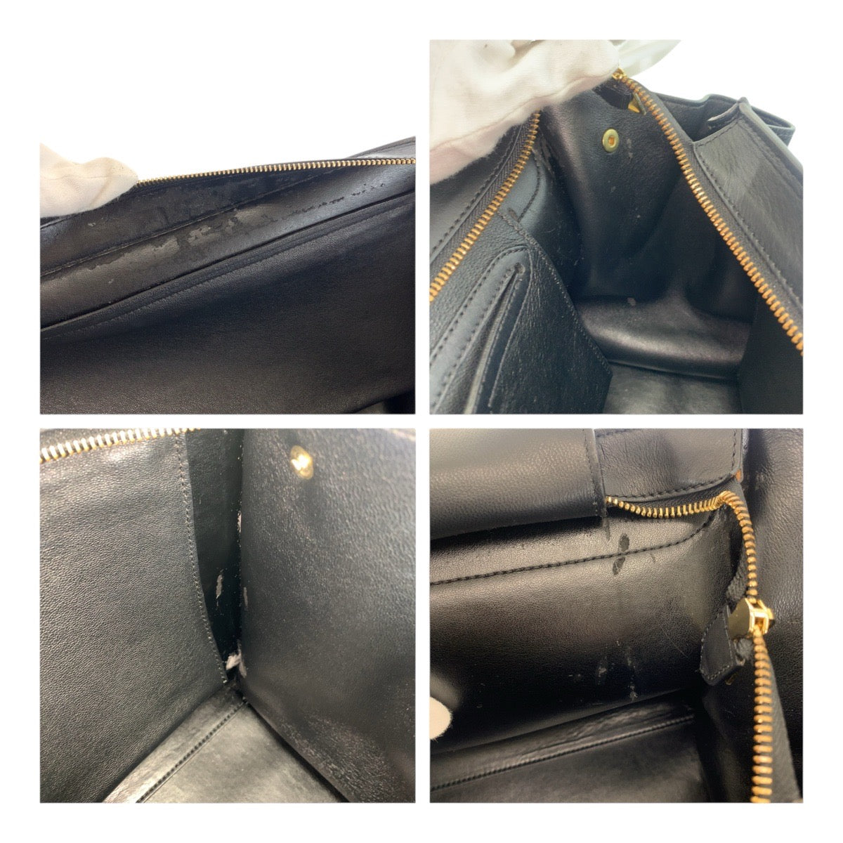 CELINE Shoulder Bag leather Black GoldMetal Trapeze Embossing
