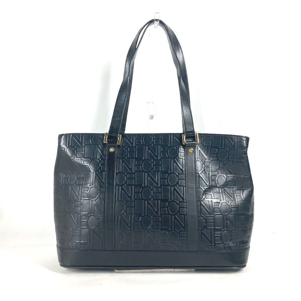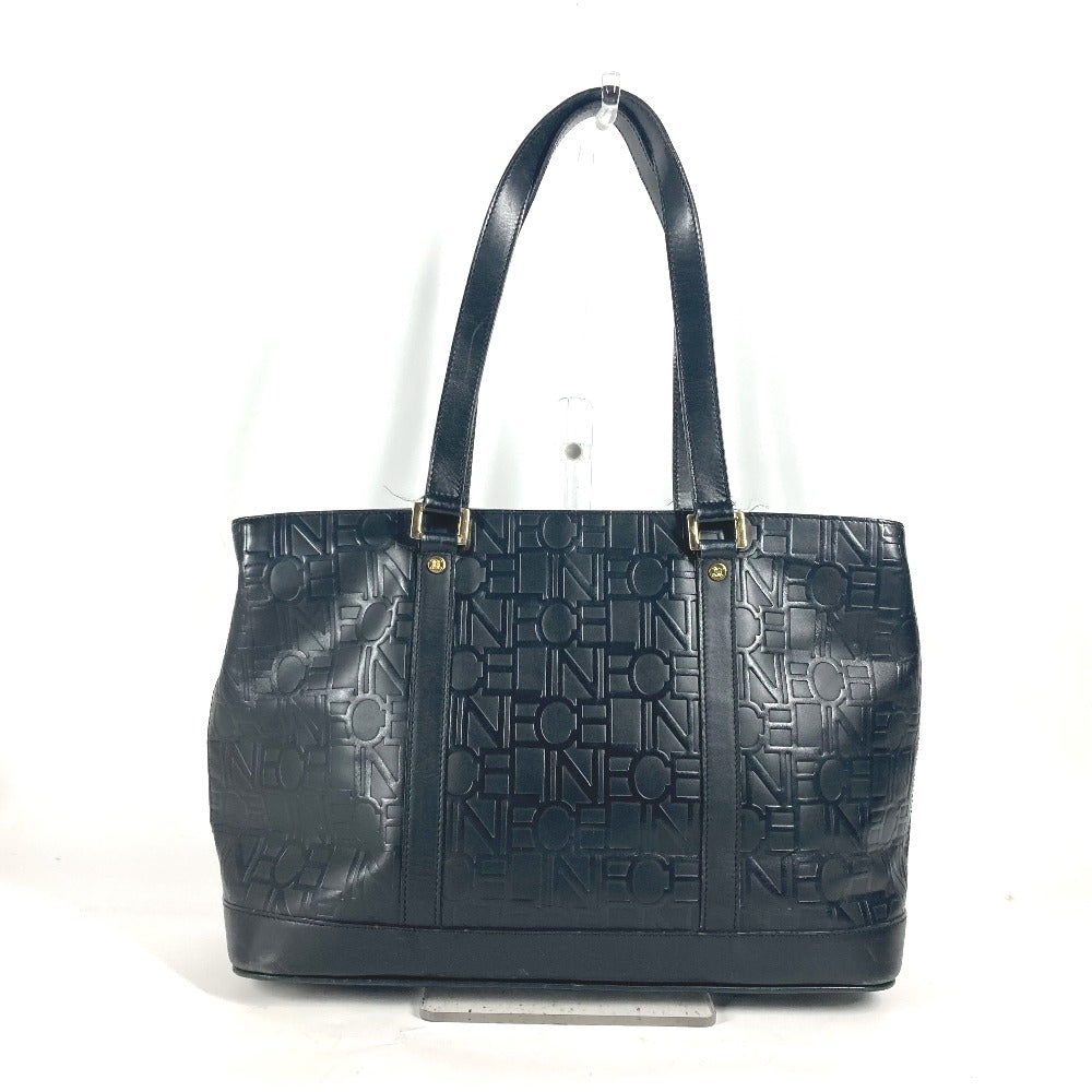 CELINE Shoulder Bag leather black Total logo Women Used Authentic