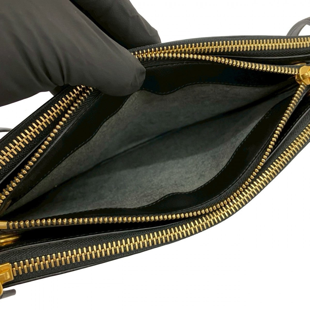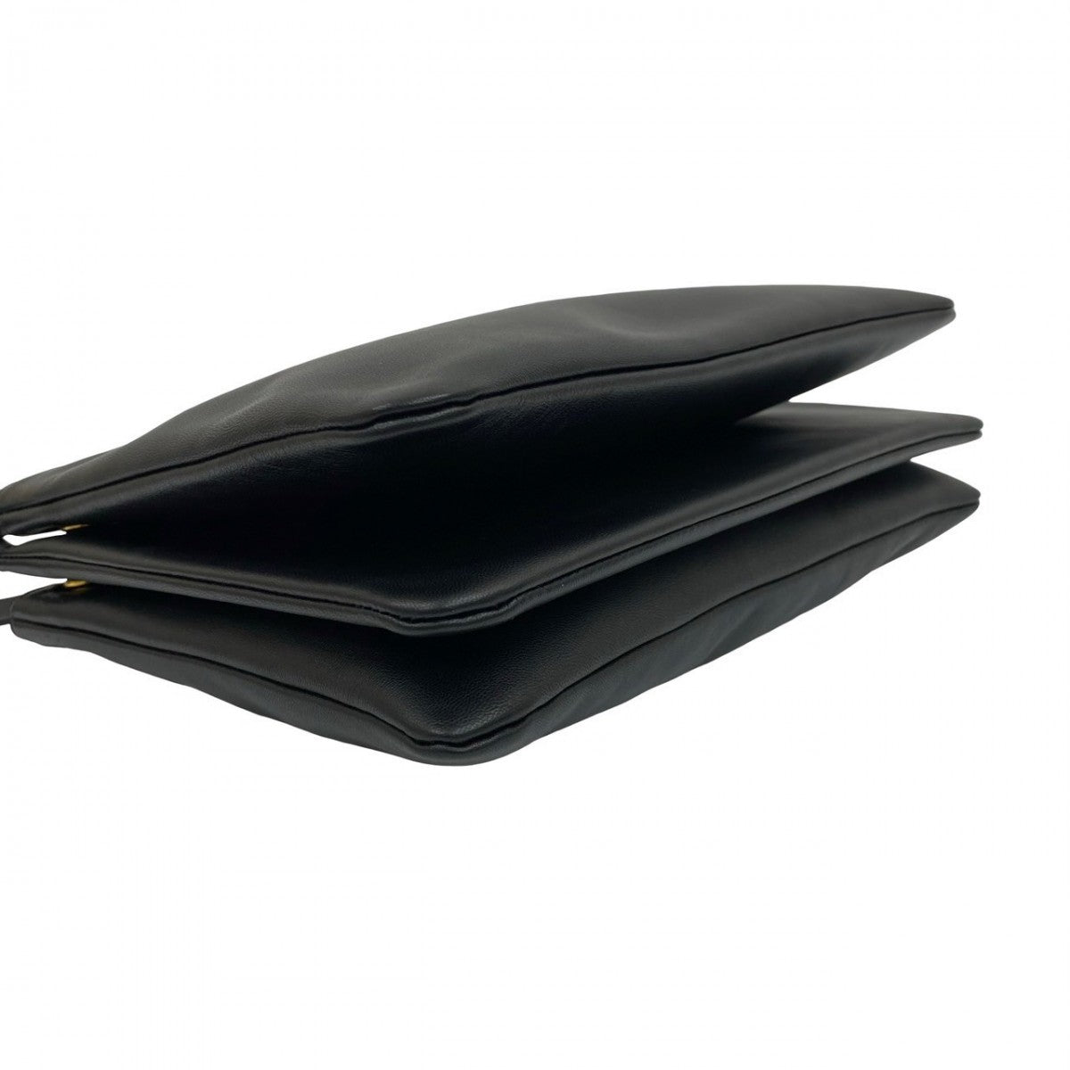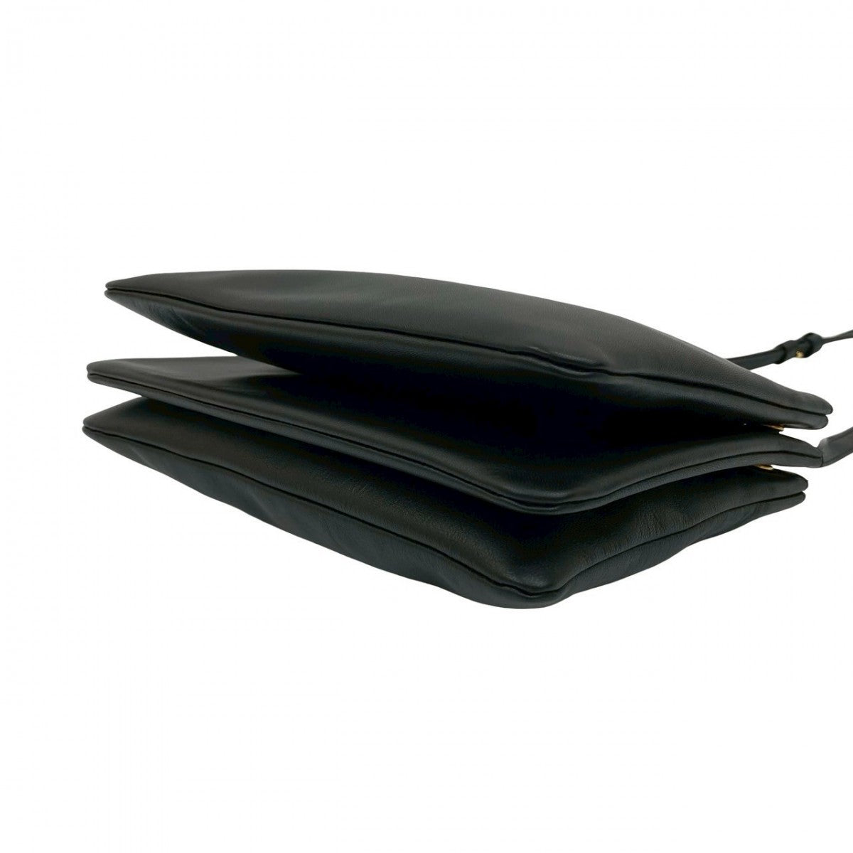CELINE Shoulder Bag leather black Trio Small Women Used Authentic