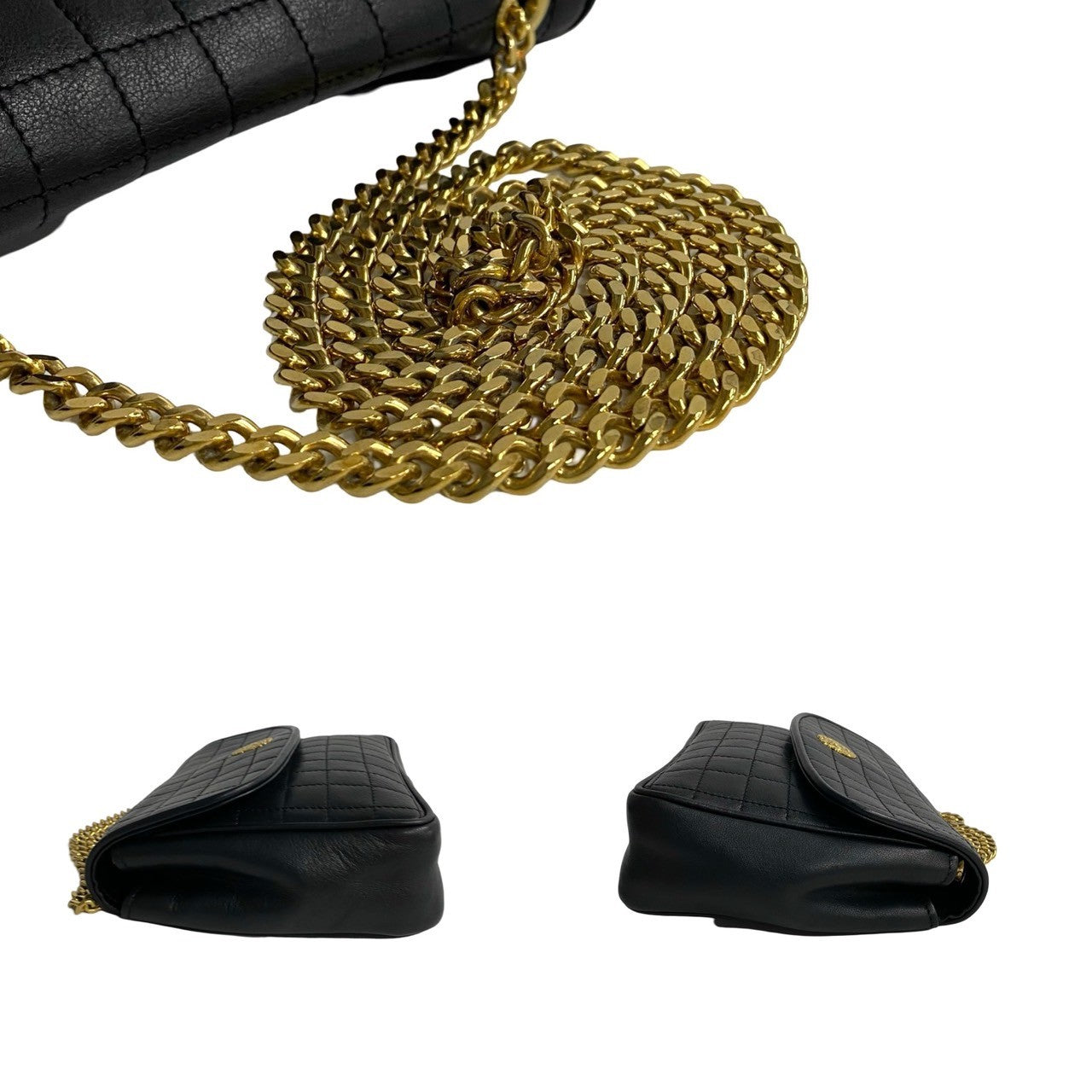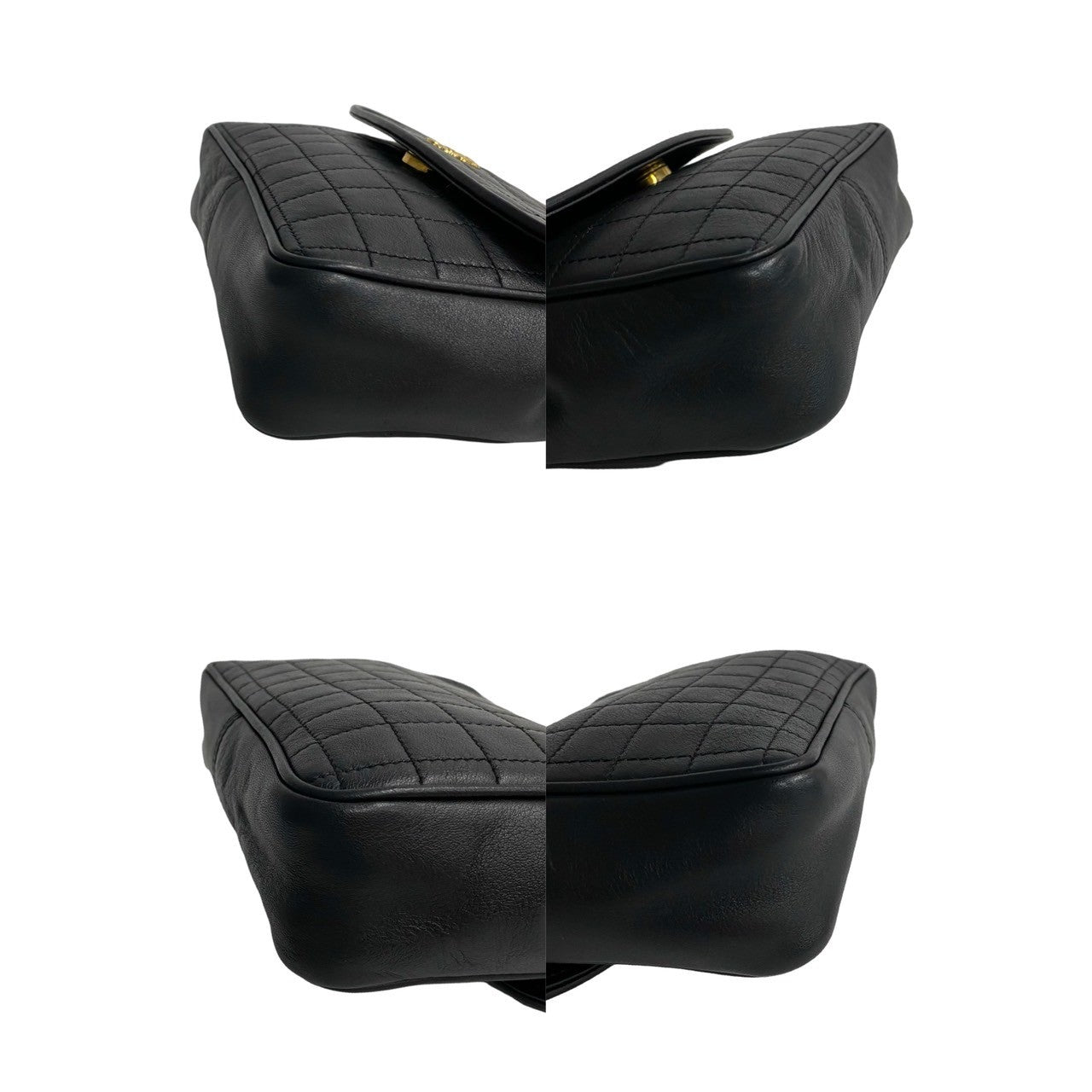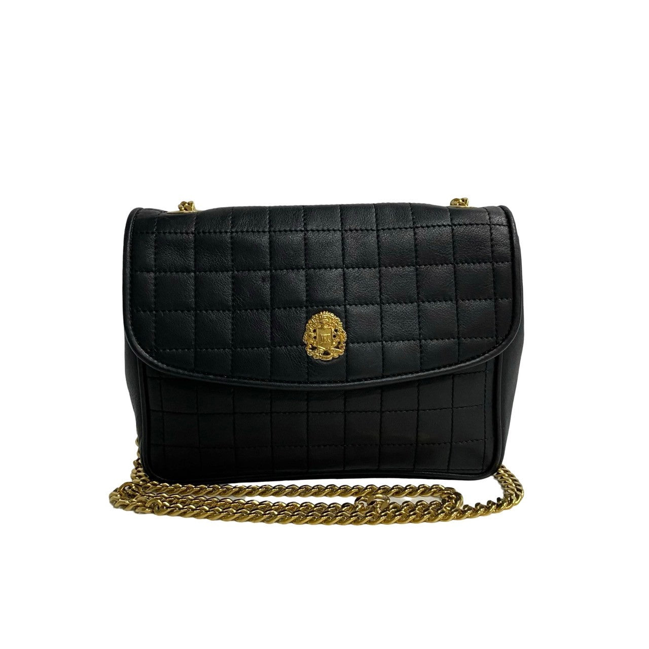 CELINE Shoulder Bag leather black Triomphe logo Metal Women Used Authentic