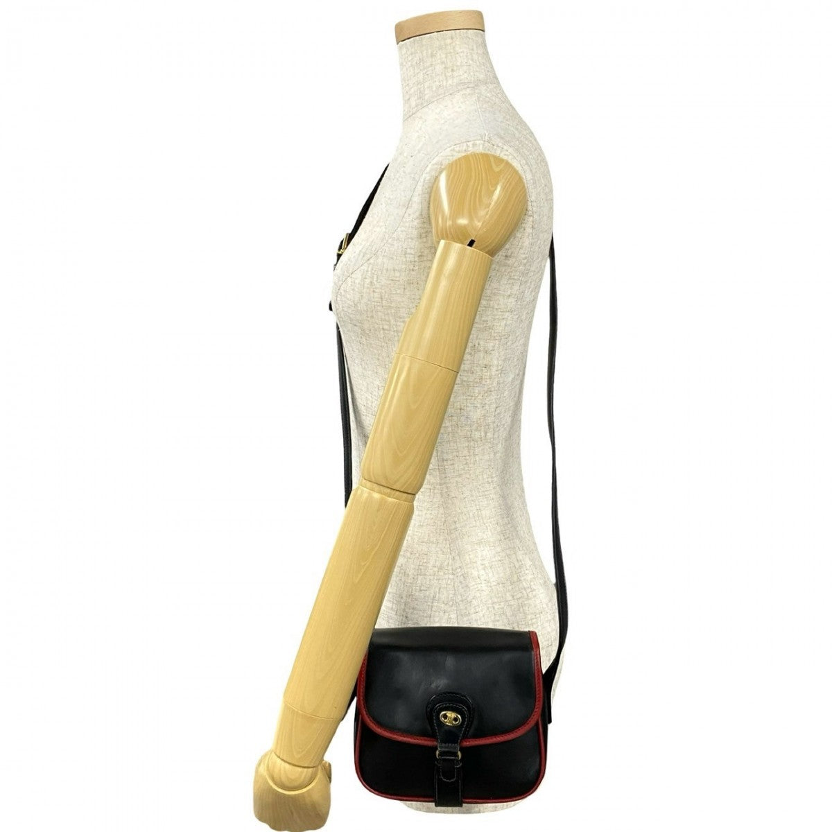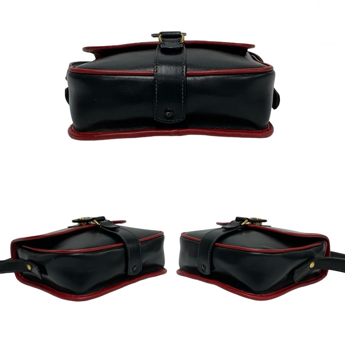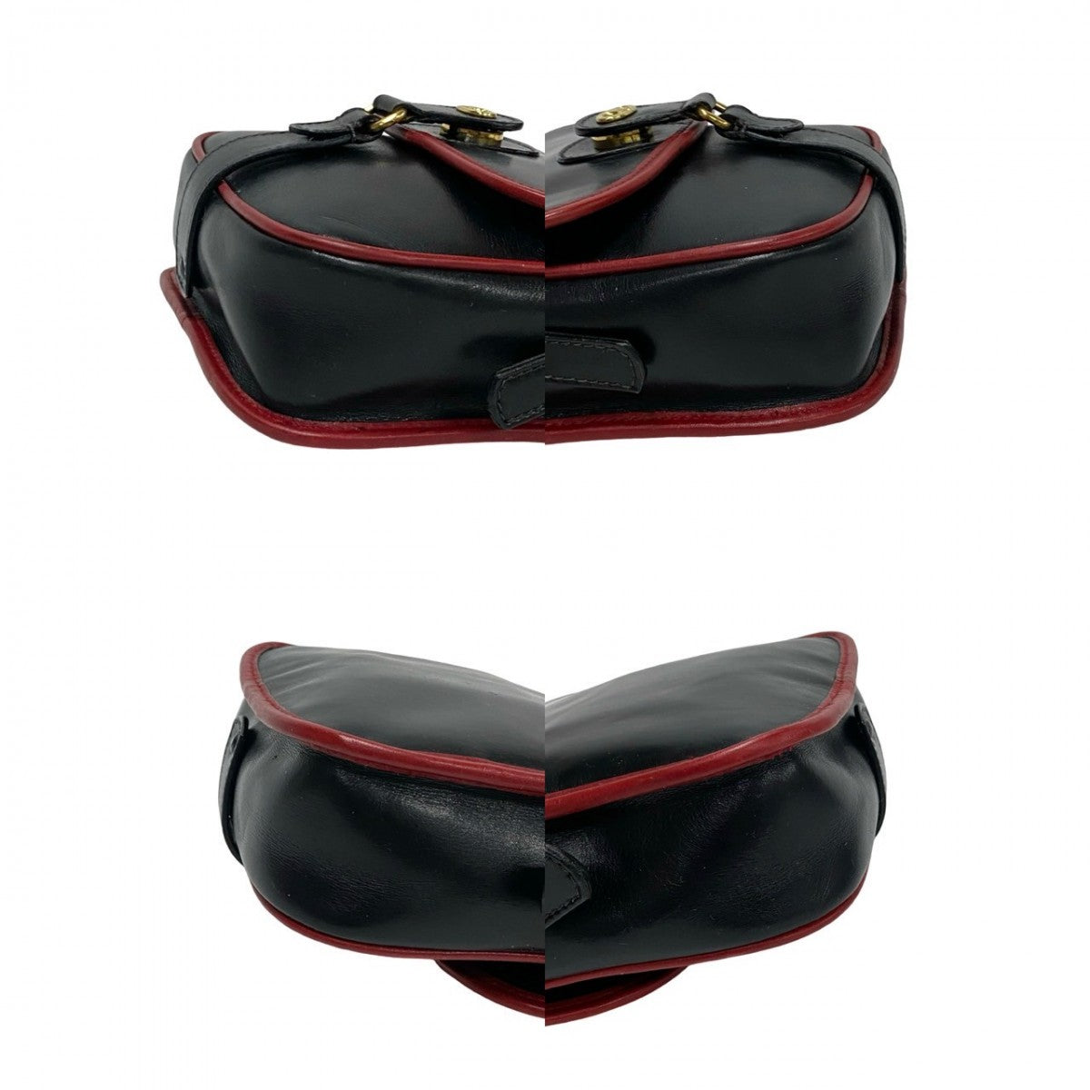 CELINE Shoulder Bag leather black Triomphe logo Metal Women Used Authentic