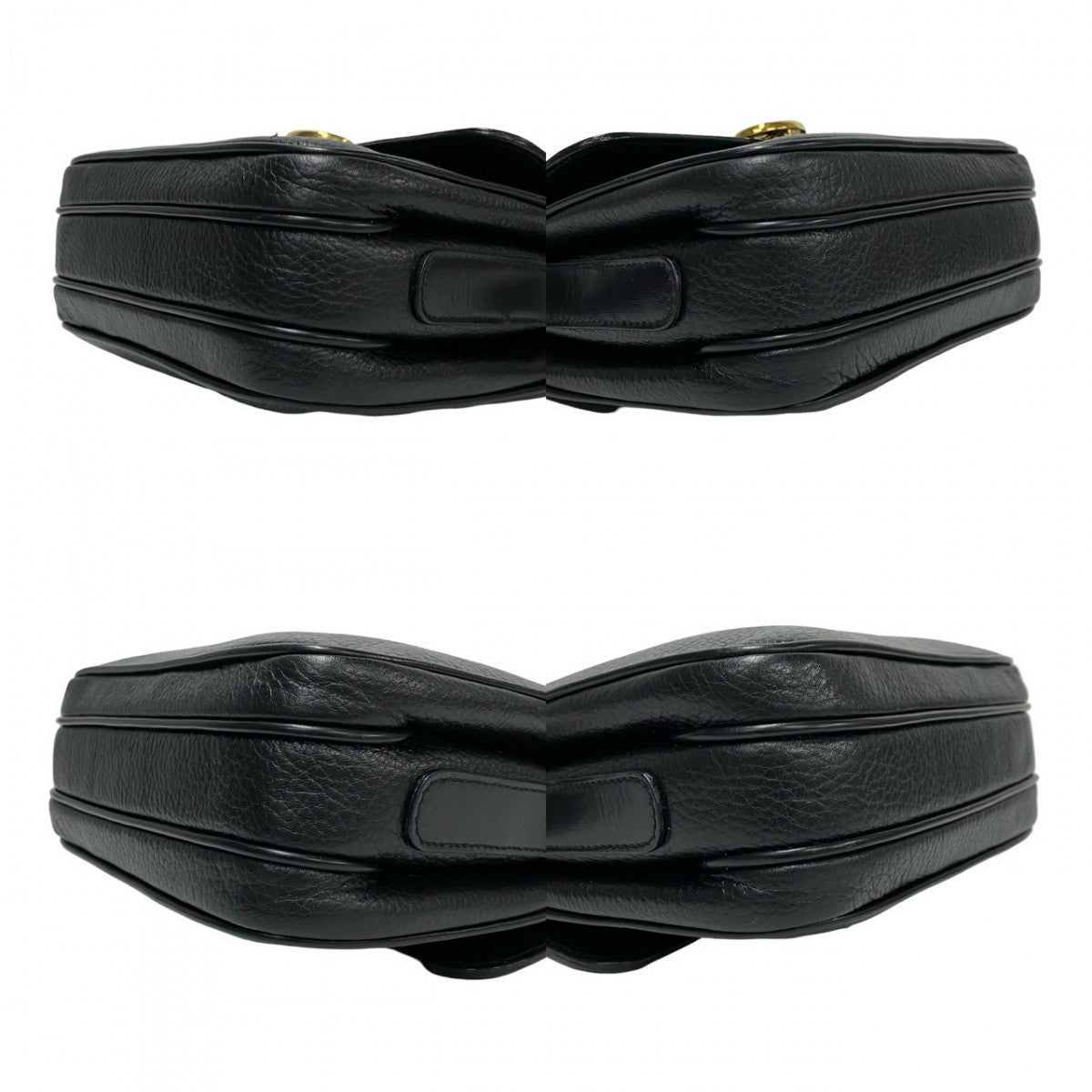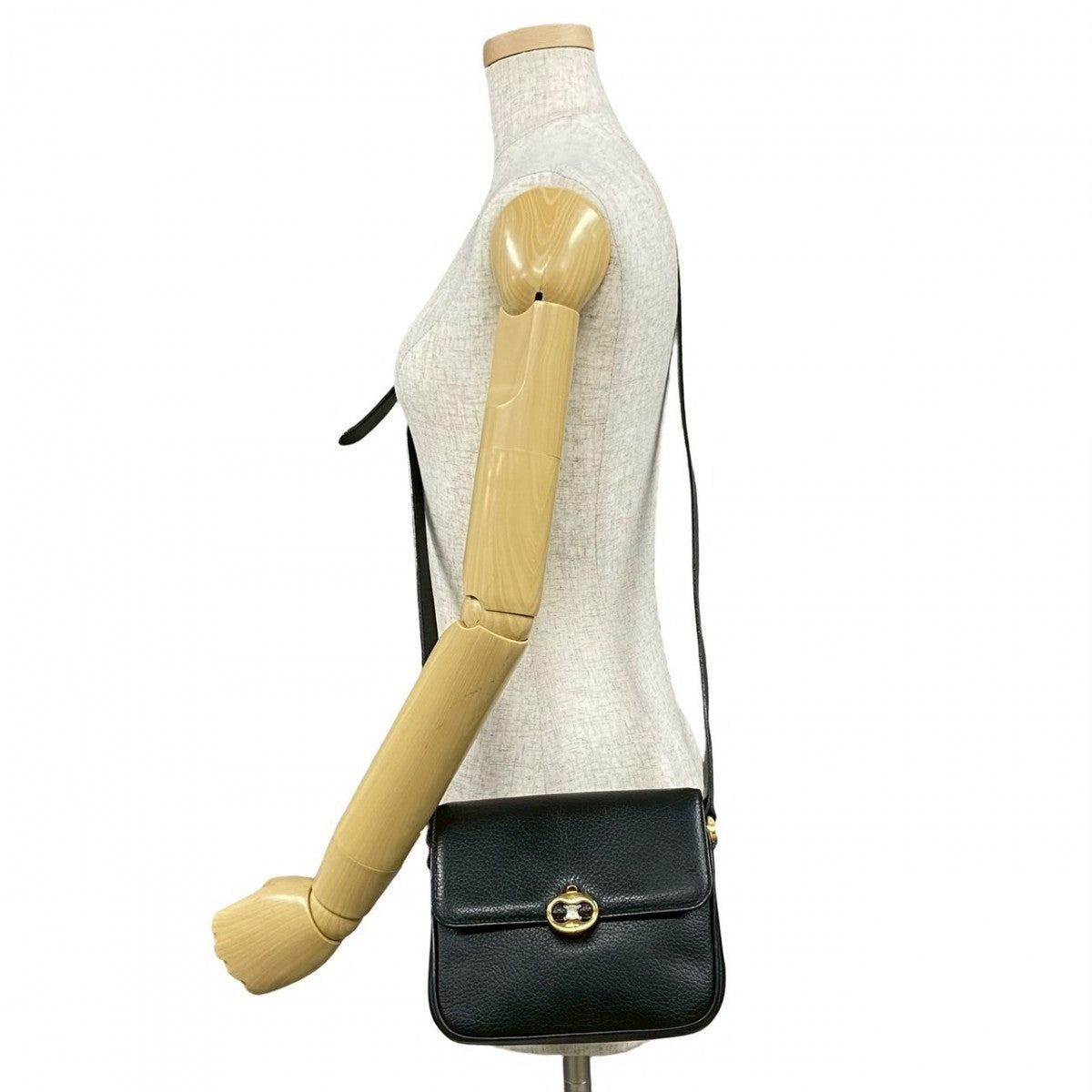 CELINE Shoulder Bag leather black Triomphe logo Metal Women Used Authentic