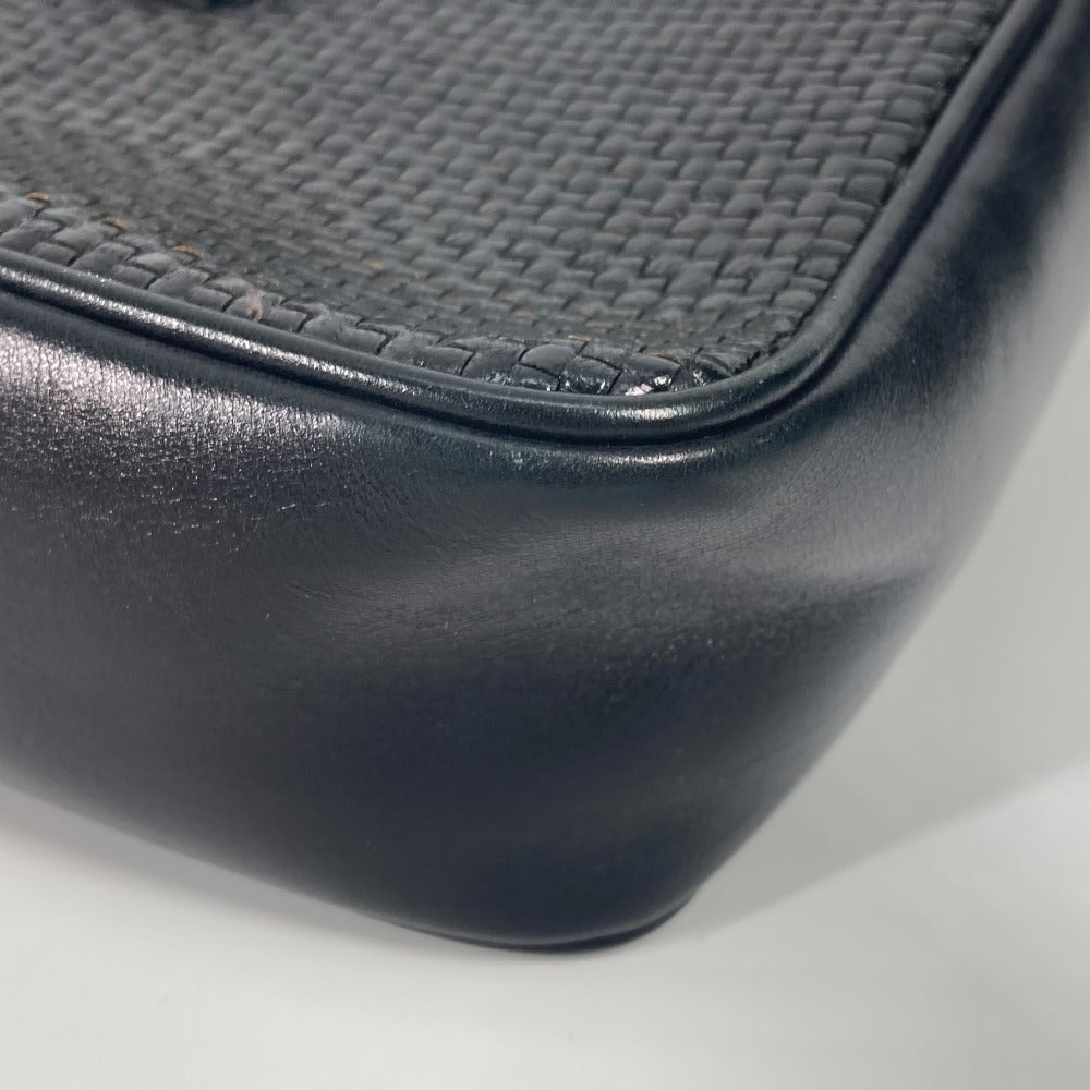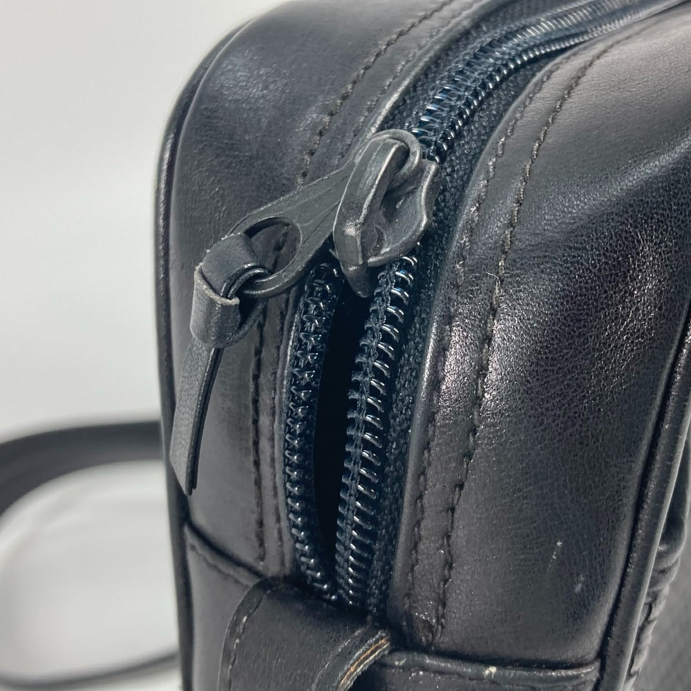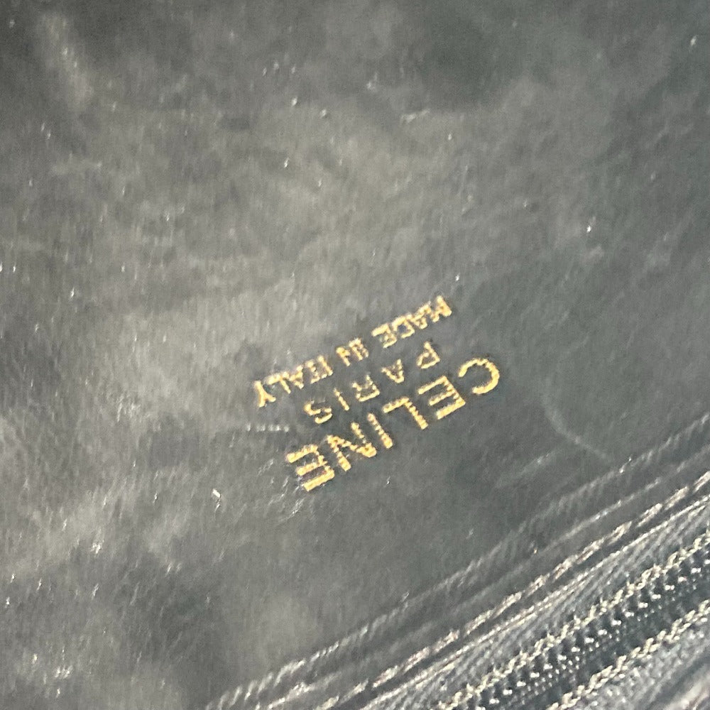 CELINE Shoulder Bag leather black vintage Carriage Metal Women Used Authentic
