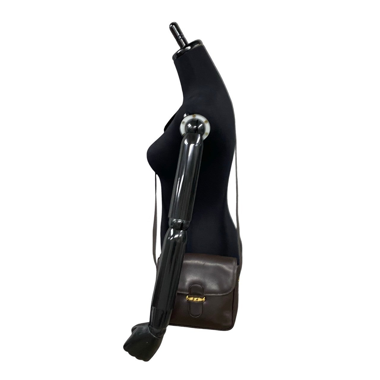 CELINE Shoulder Bag leather Brown Triomphe Metal Women Used Authentic