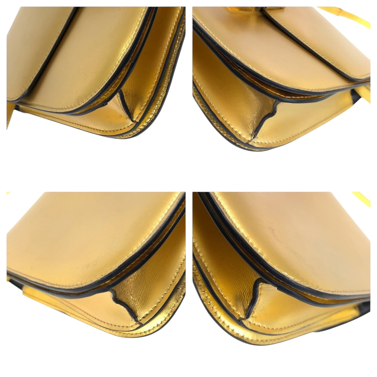 CELINE Shoulder Bag leather Gold Metal Shoulder Bag pochette Women Used Authentic