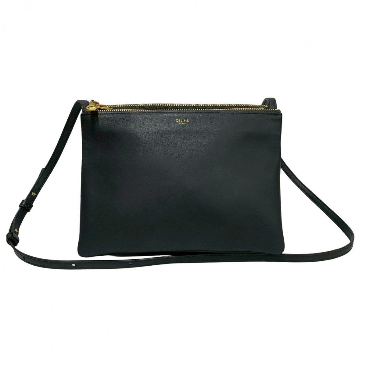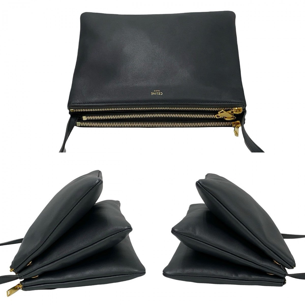 CELINE Shoulder Bag leather gray logo Trio Small Women Used Authentic