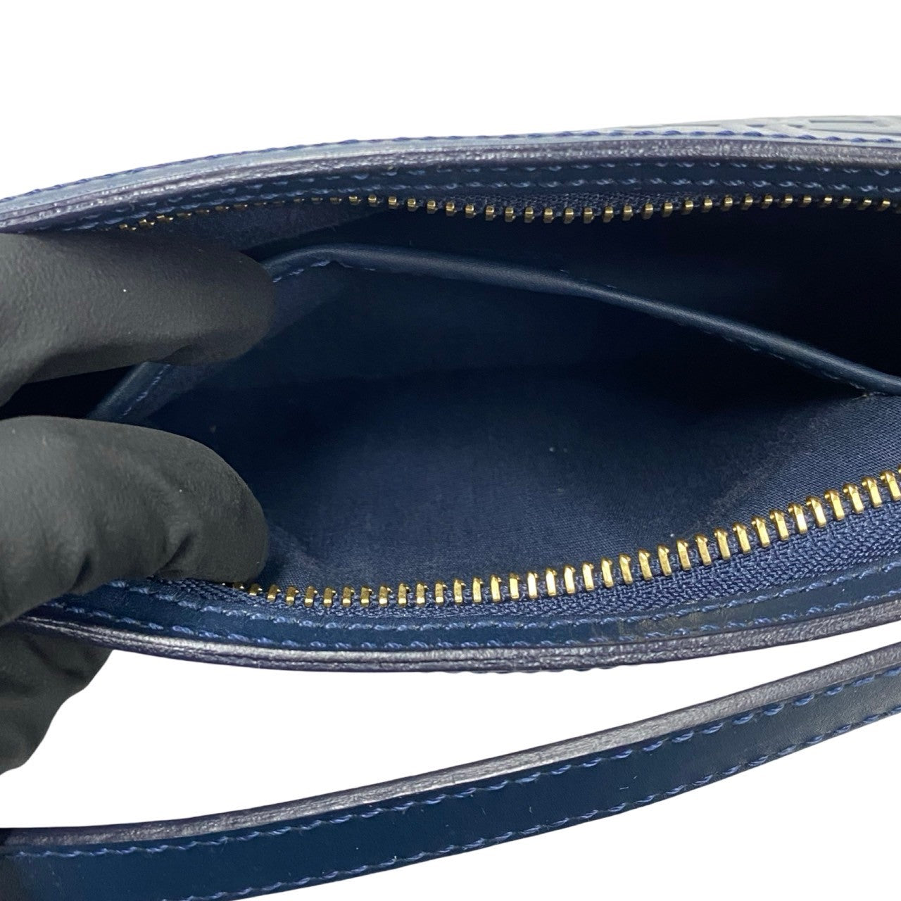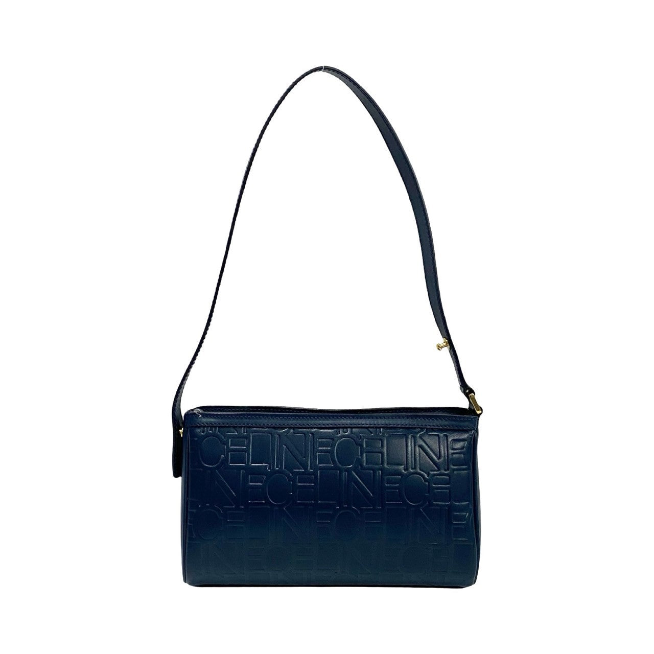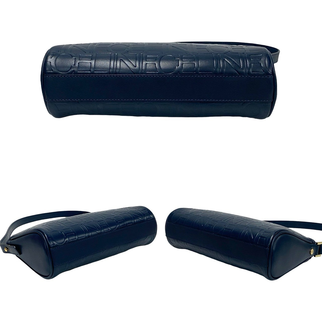CELINE Shoulder Bag leather Navy Logo all-over pattern Women Used Authentic