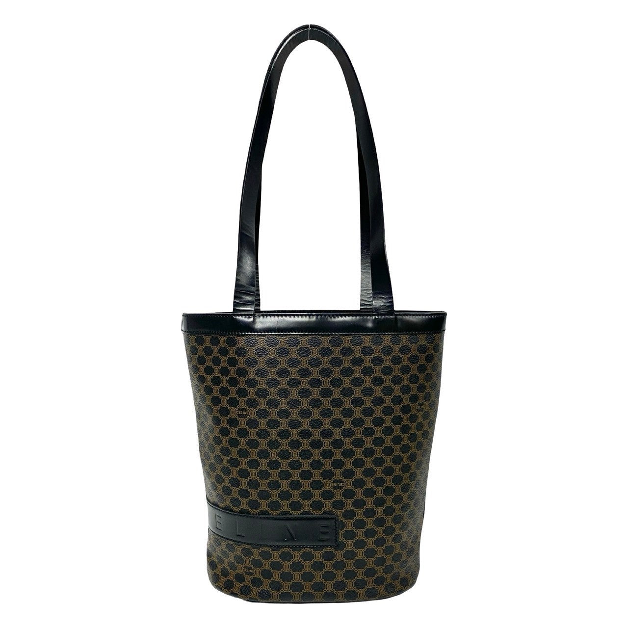 CELINE Shoulder Bag Leather, PVC black Macadam Blason Pattern Women Used Authentic