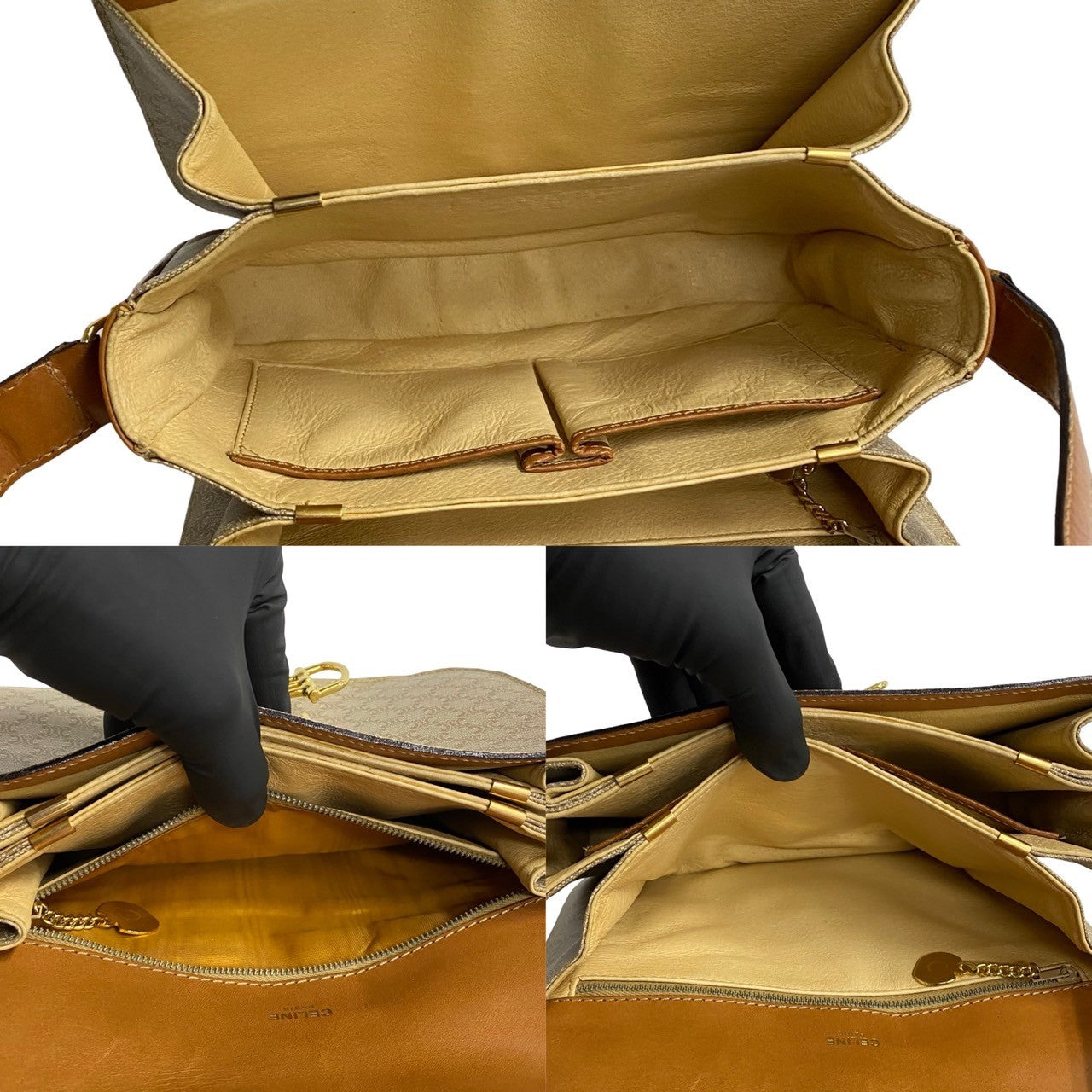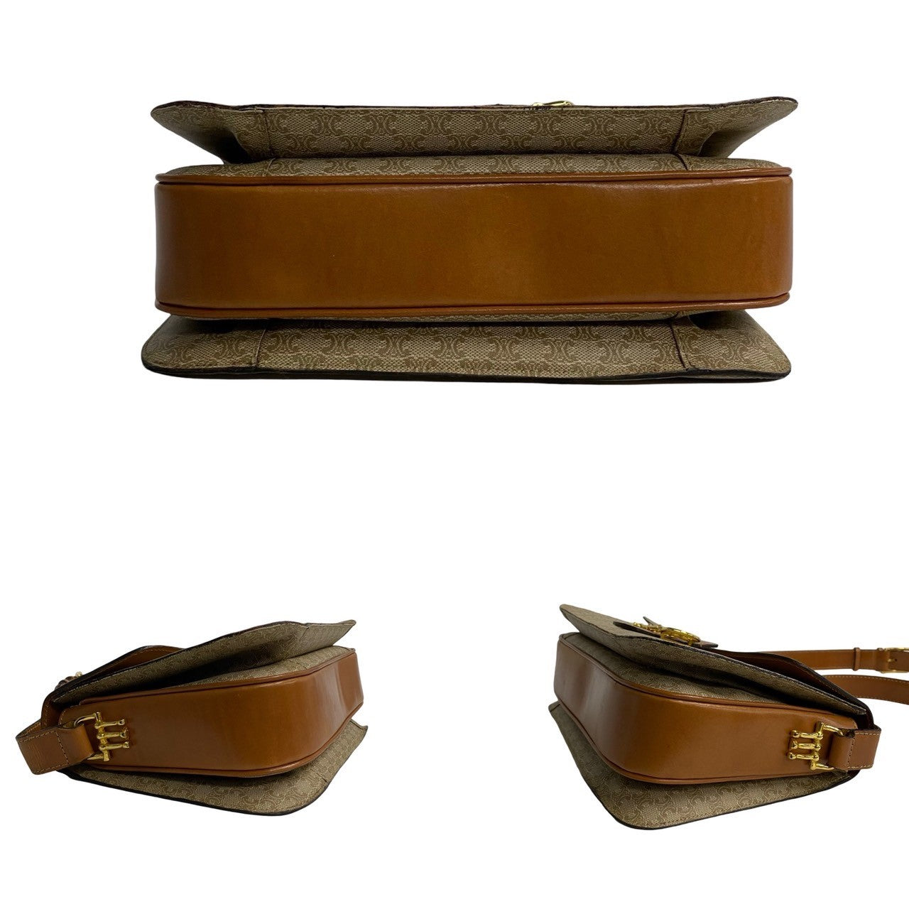 CELINE Shoulder Bag Leather, PVC Brown Macadam Blason Pattern Women Used Authentic