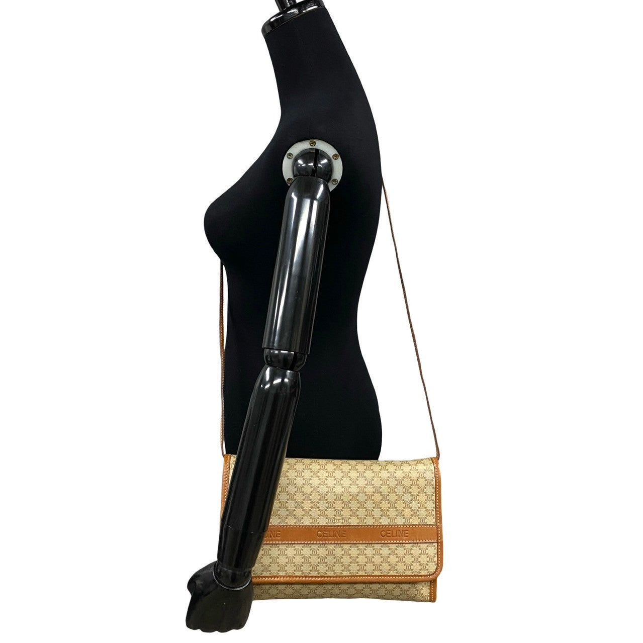 CELINE Shoulder Bag Leather, PVC Brown Macadam Blason Triomphe Pattern Women Used Authentic