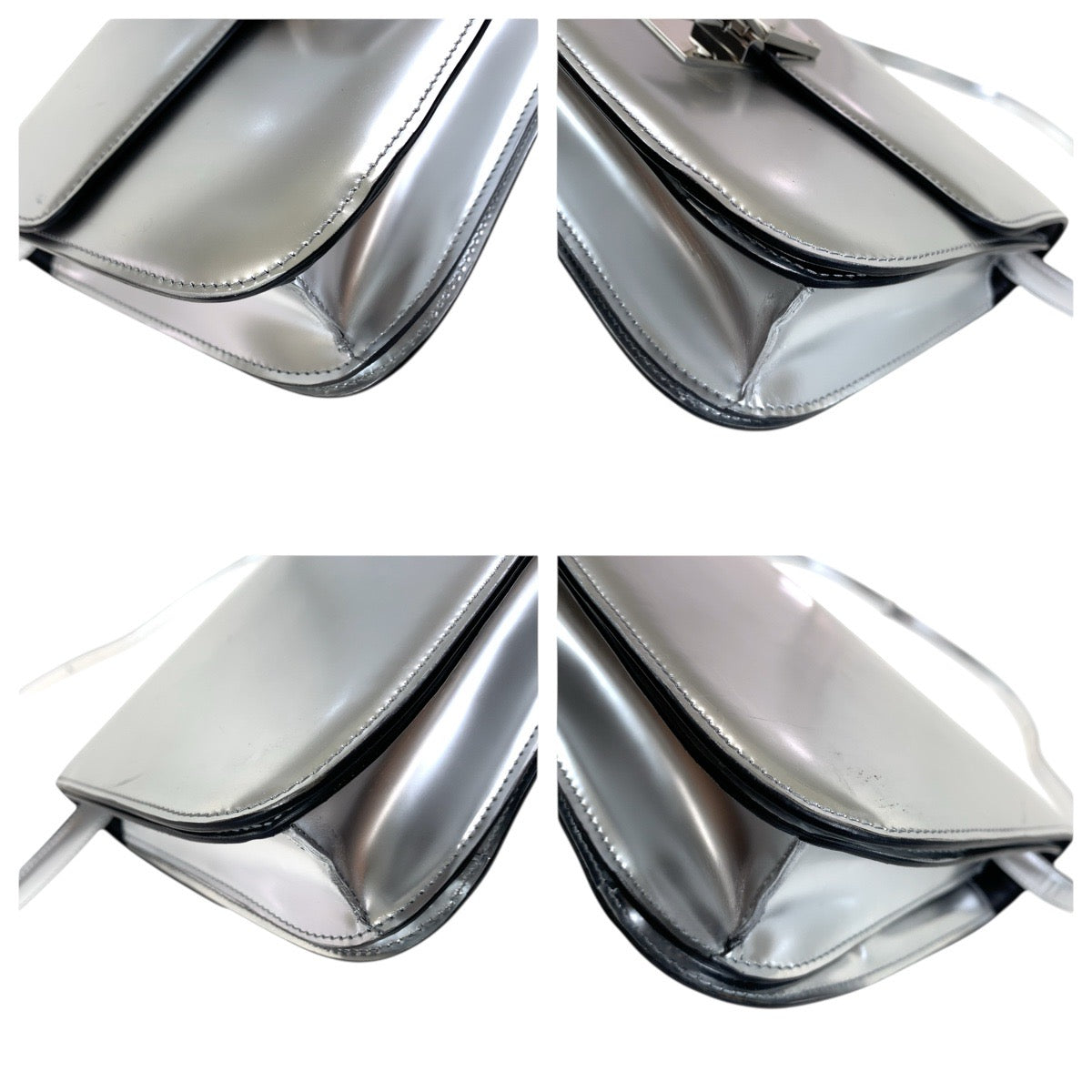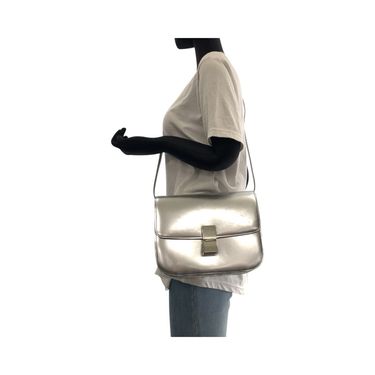 CELINE Shoulder Bag leather Silver SilverMetal Shoulder Bag pochette Women Used Authentic