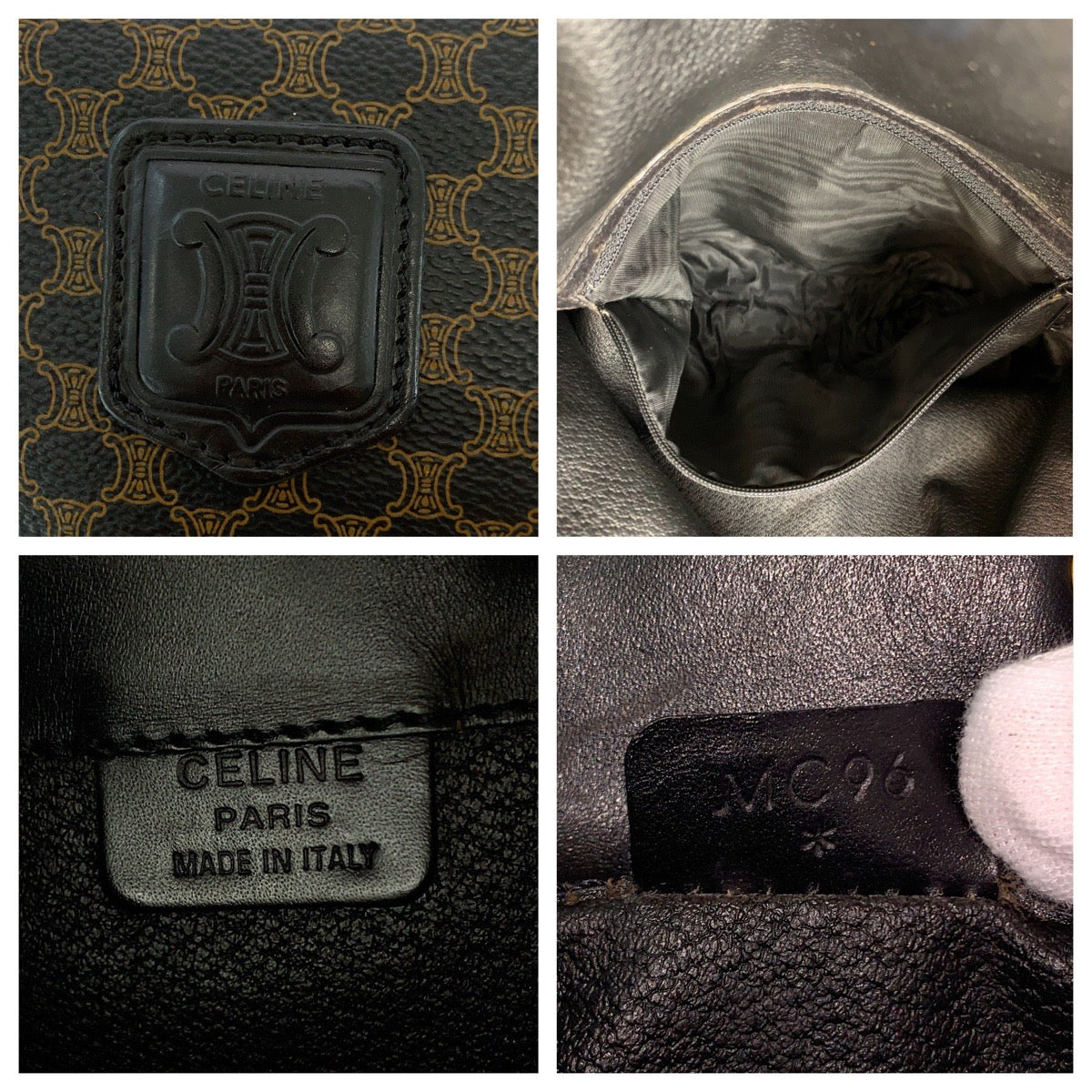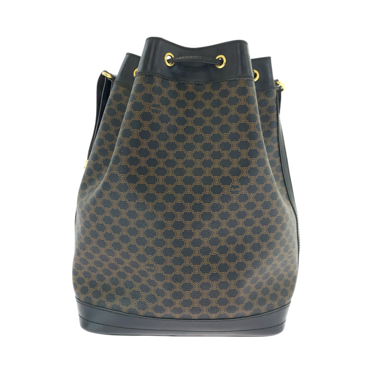 CELINE Shoulder Bag MC96 PVC, Leather Brown Black Gold Metal Drawstring Shoulder Bag Macadam Women Used Authentic