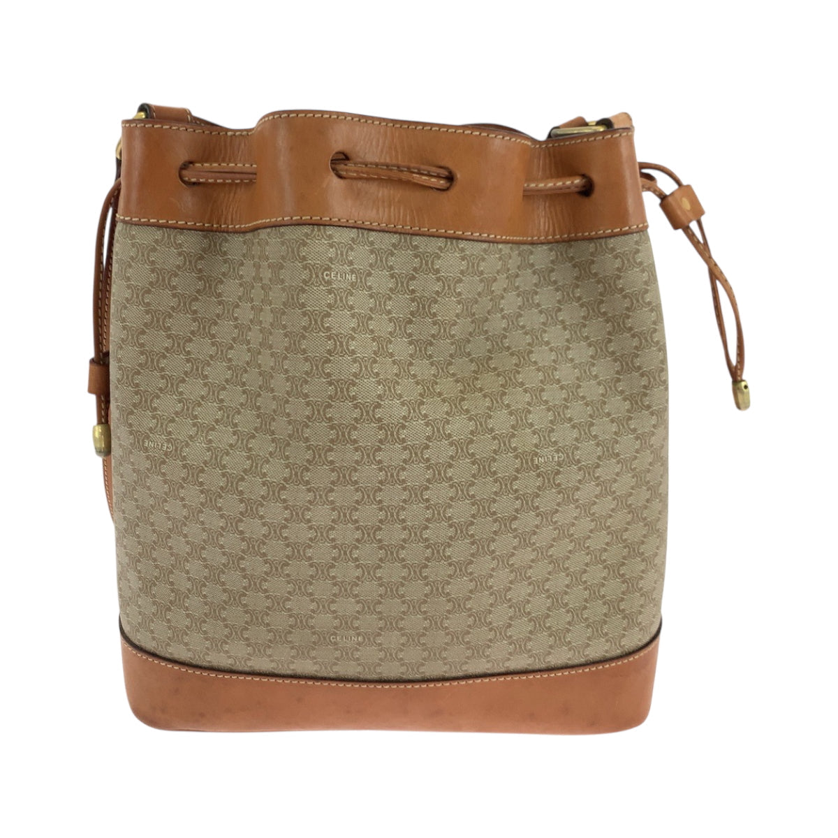CELINE Shoulder Bag PVC Beige Brown Gold Metal Macadam
