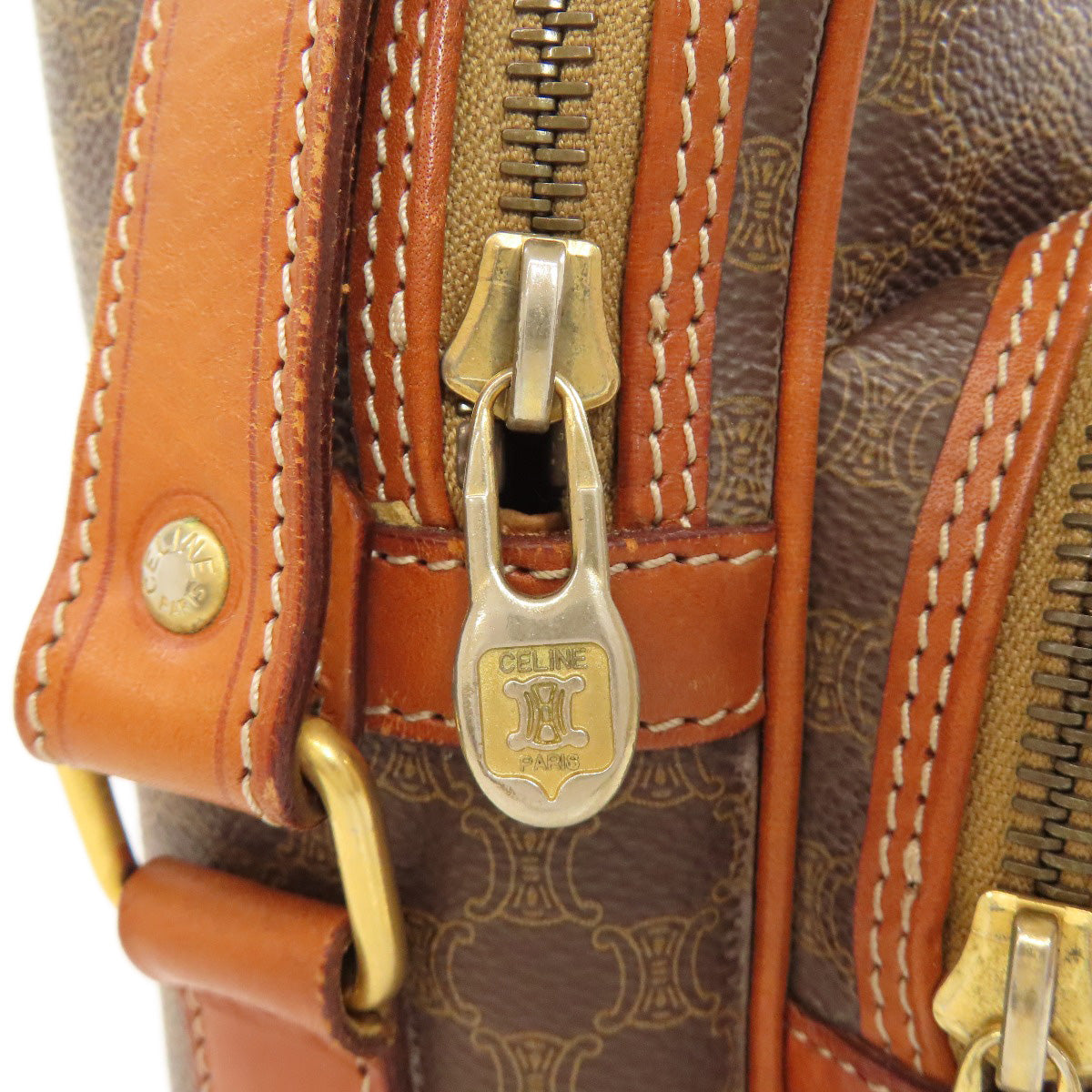 CELINE Shoulder Bag PVC Brown Macadam 2WAY Women Used Authentic