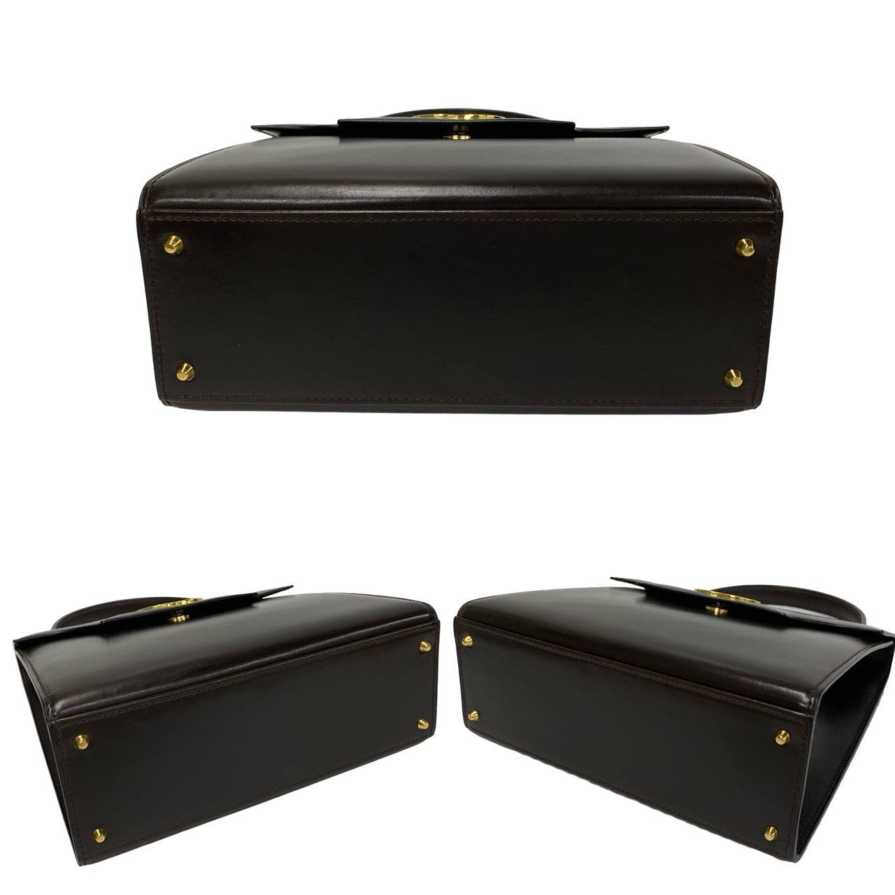 CELINE Tote Bag Calfskin Brown Circle Logo Metal Women Used Authentic