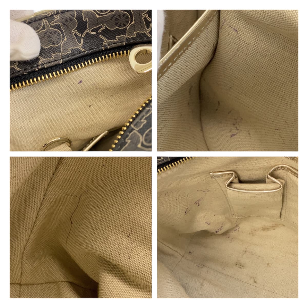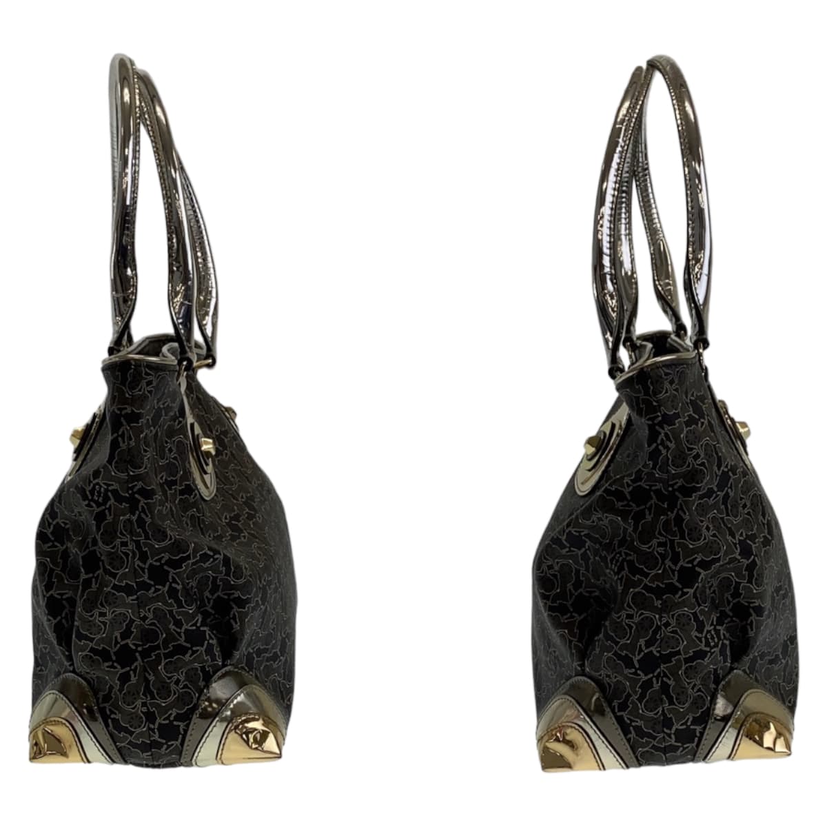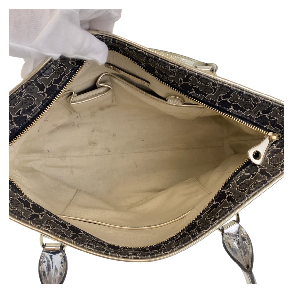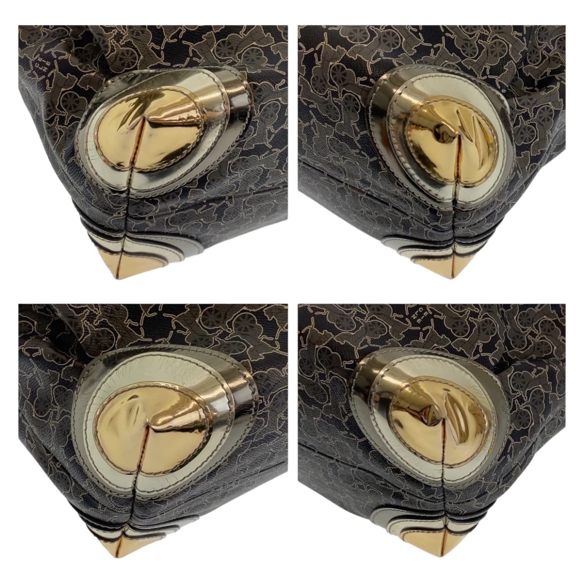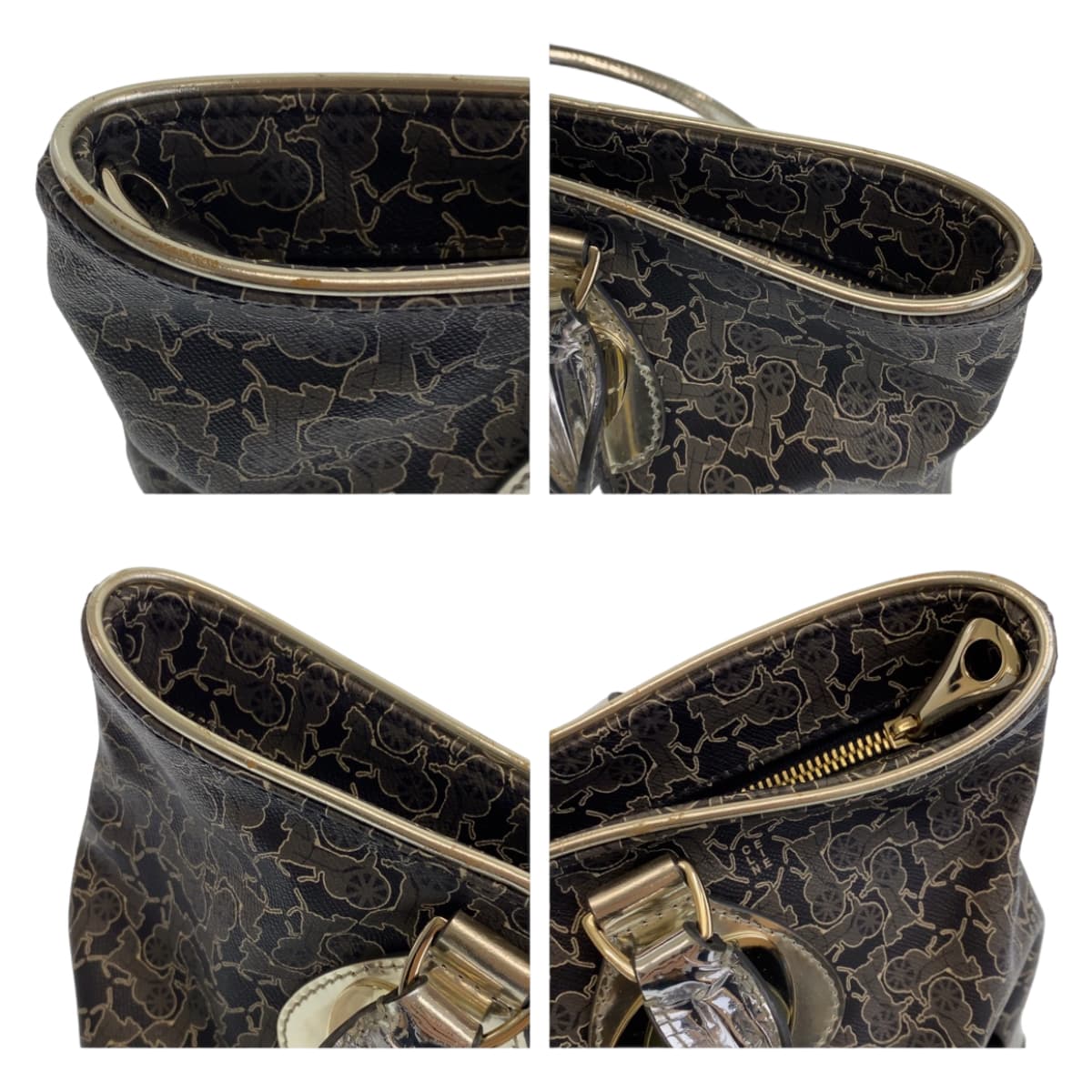 CELINE Tote Bag PVC Grey Multicolor SilverMetal Tote Bag Shoulder Bag Handbag Sulky Carriage Pattern Women Used Authentic