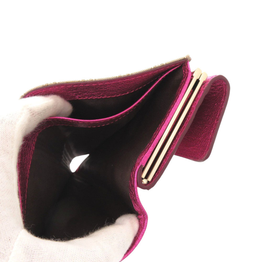 CELINE Tri-fold wallet canvas beige Macadam Pattern Purse Women Used Authentic