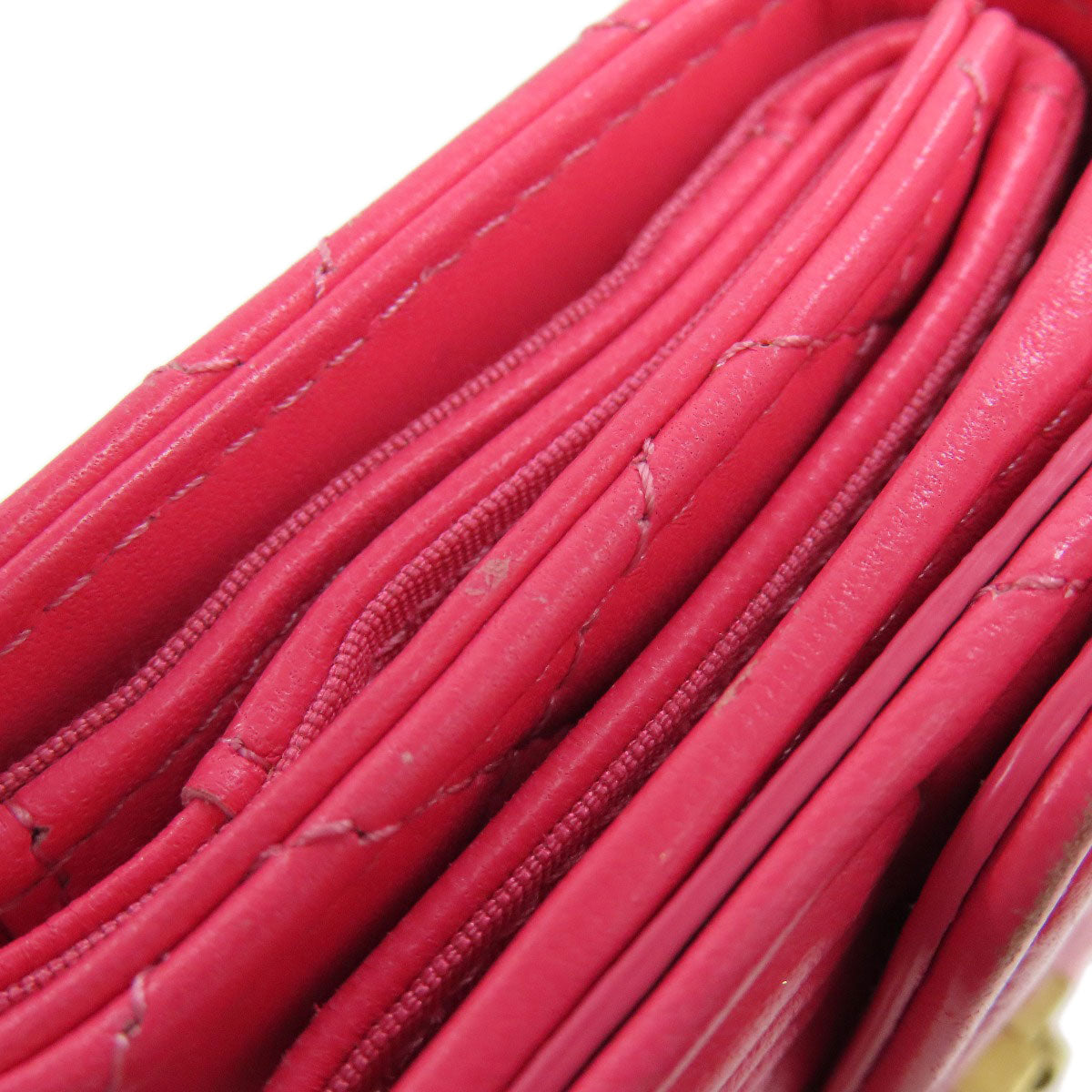 CHANEL Bifold Wallet Calfskin pink Tri-fold Boy Chanel Women Used Authentic