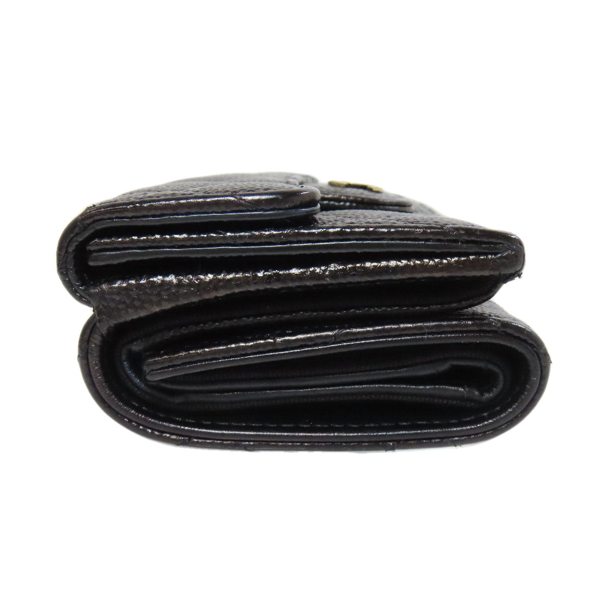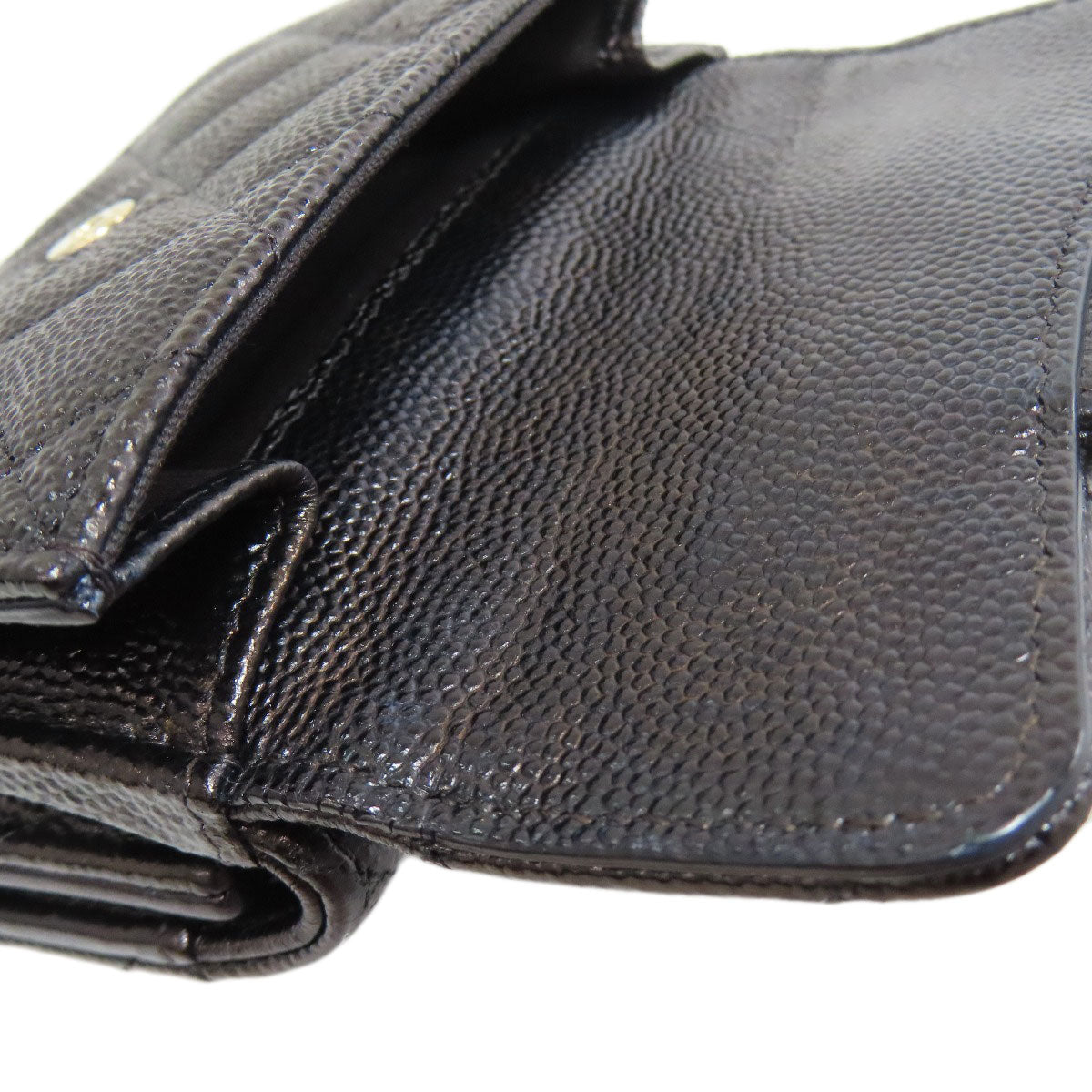 CHANEL Bifold Wallet Grained Calfskin Skin black Compact Wallet Matelasse Gold Metal Women Used Authentic
