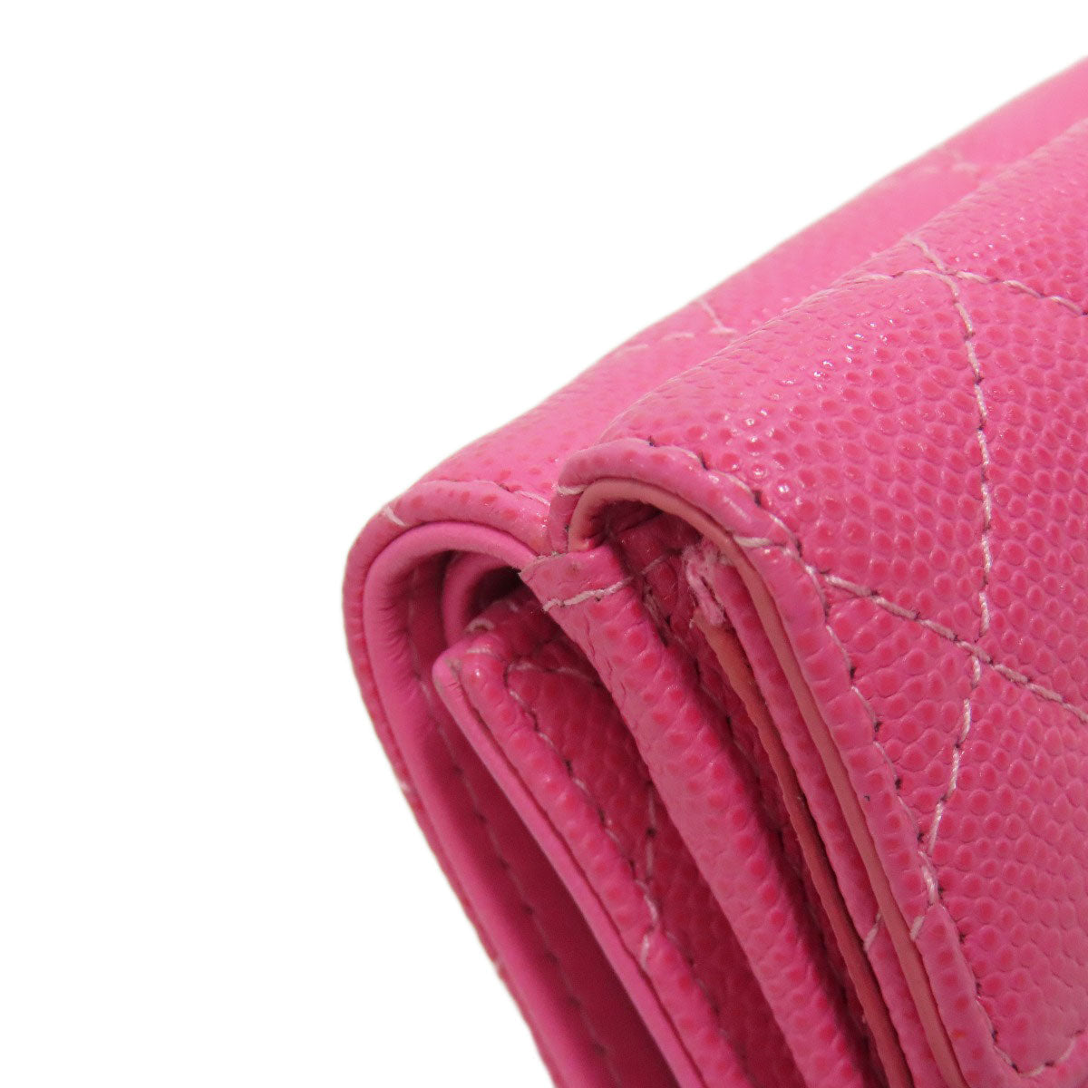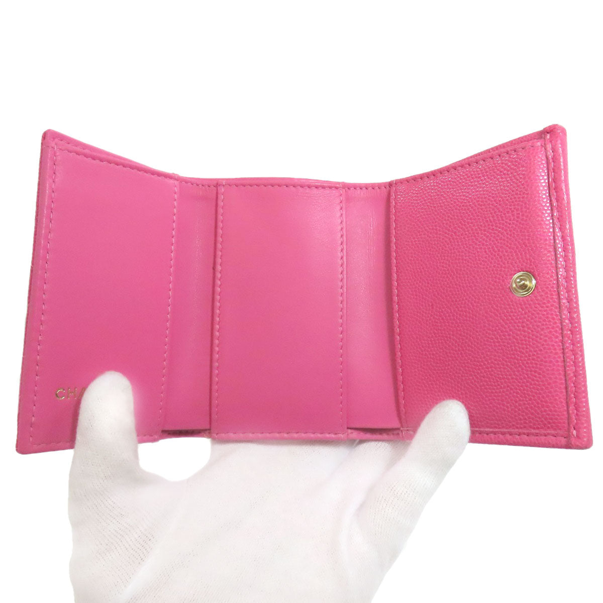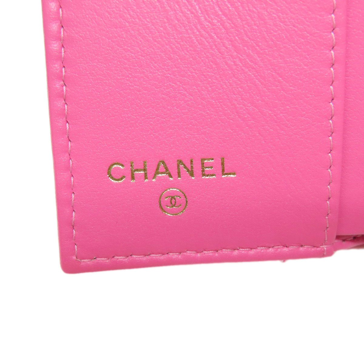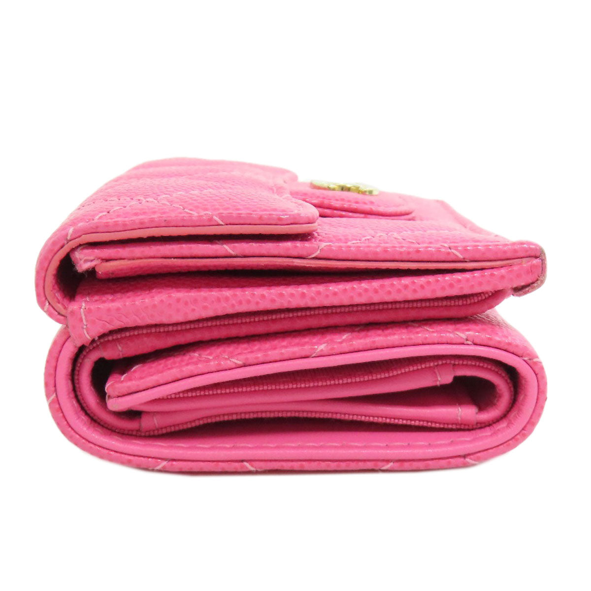 CHANEL Bifold Wallet Grained Calfskin Skin pink COCO Mark Gold Metal Tri-fold Wallet Women Used Authentic