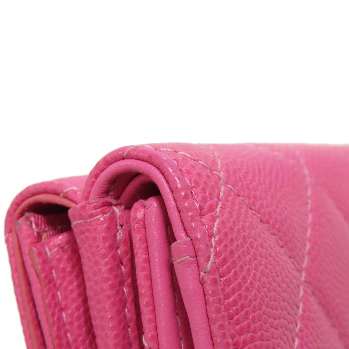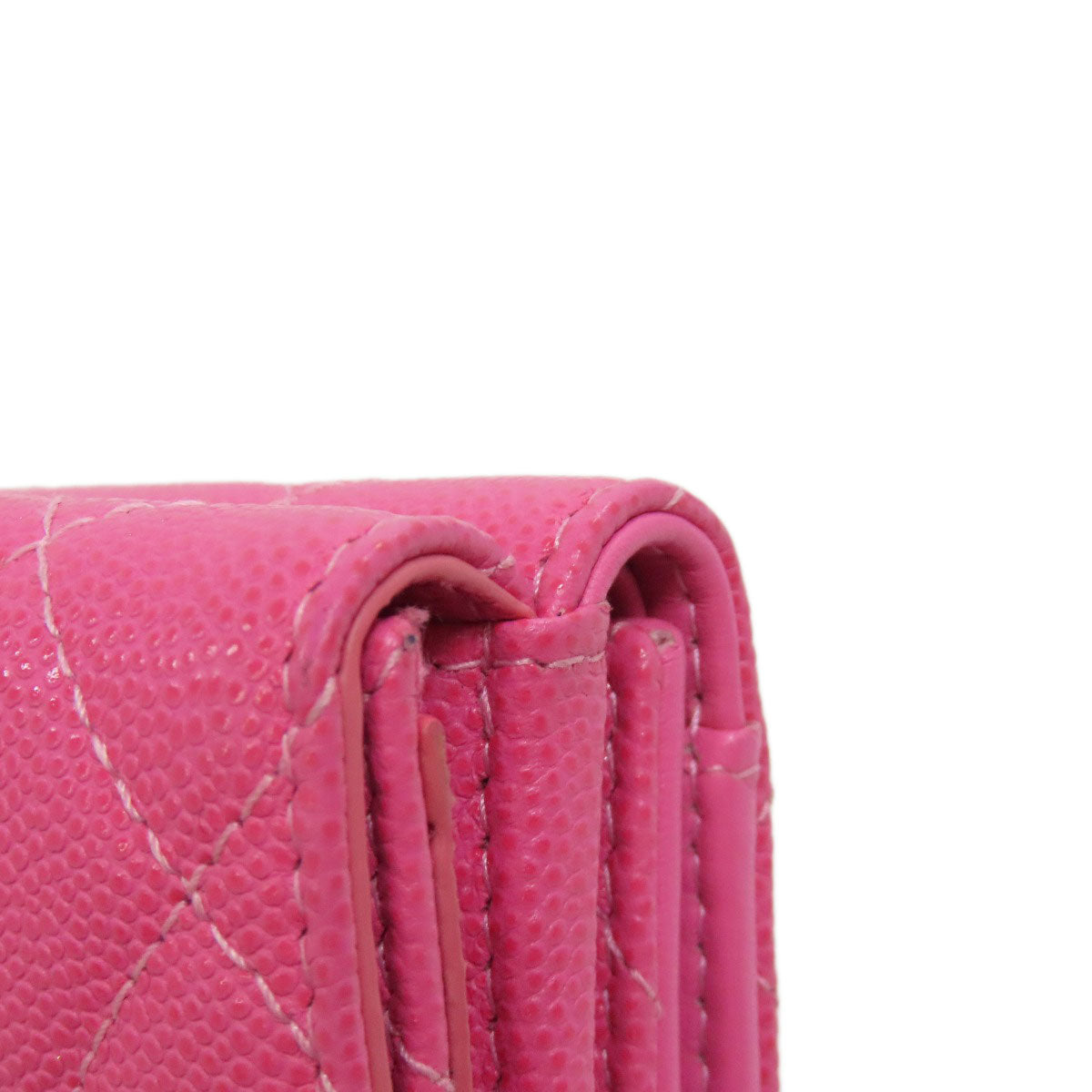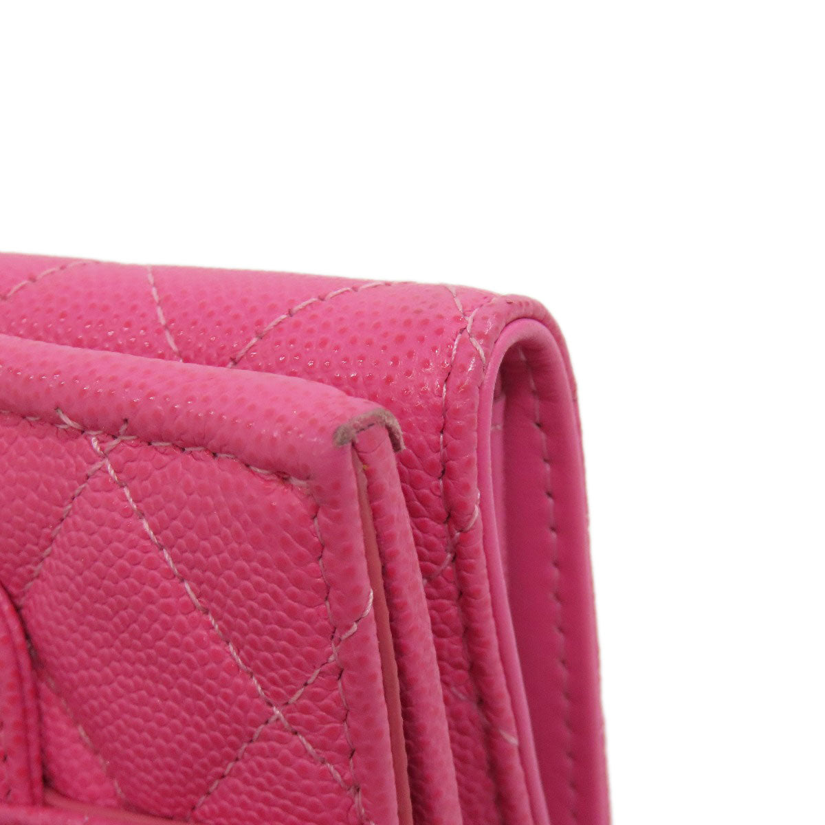 CHANEL Bifold Wallet Grained Calfskin Skin pink COCO Mark Gold Metal Tri-fold Wallet Women Used Authentic