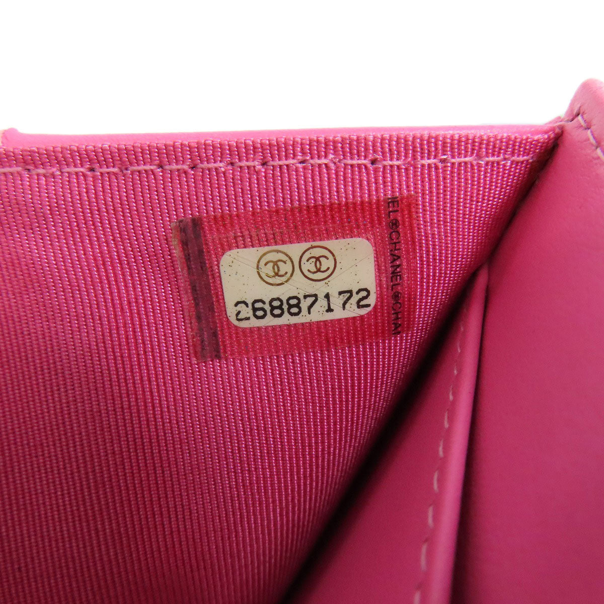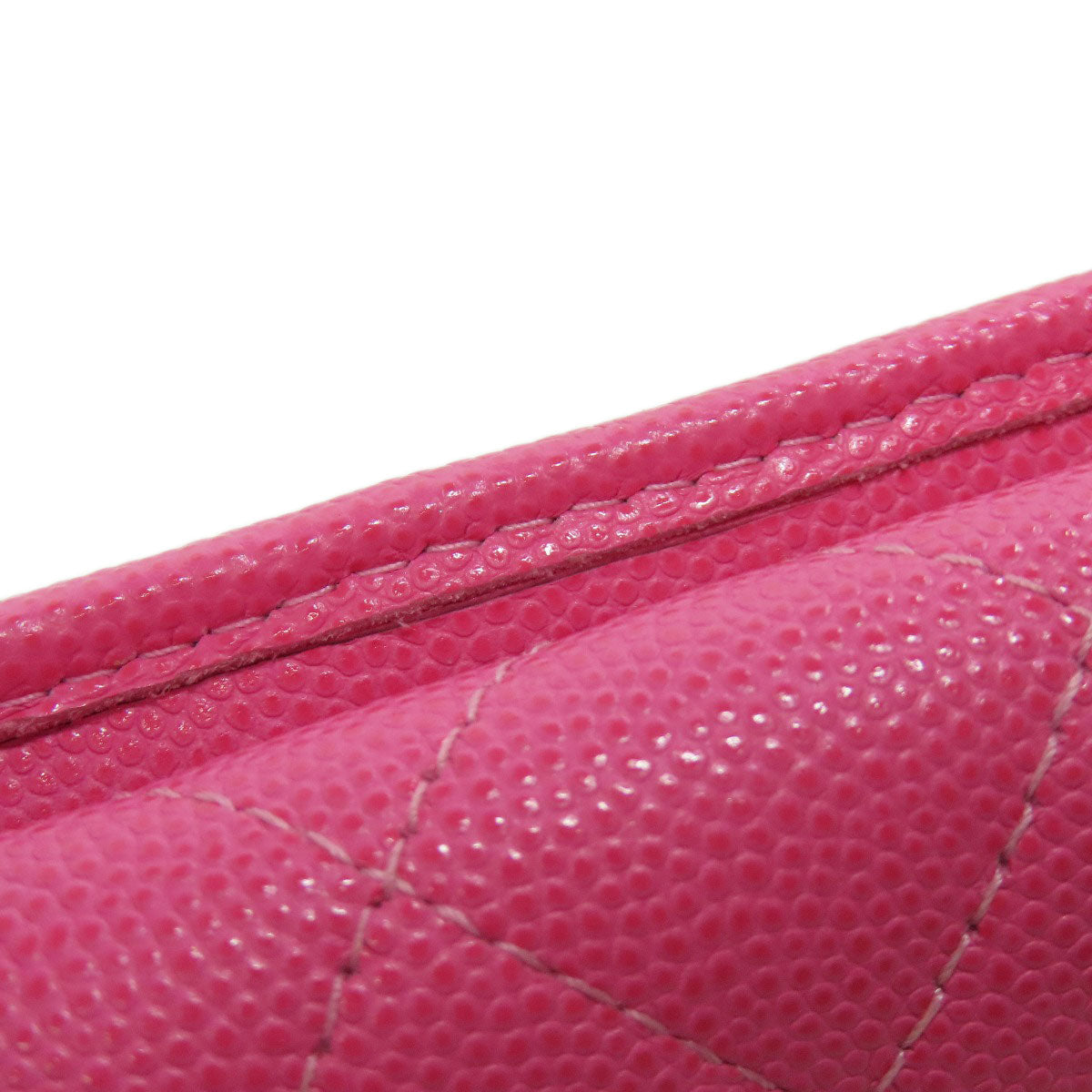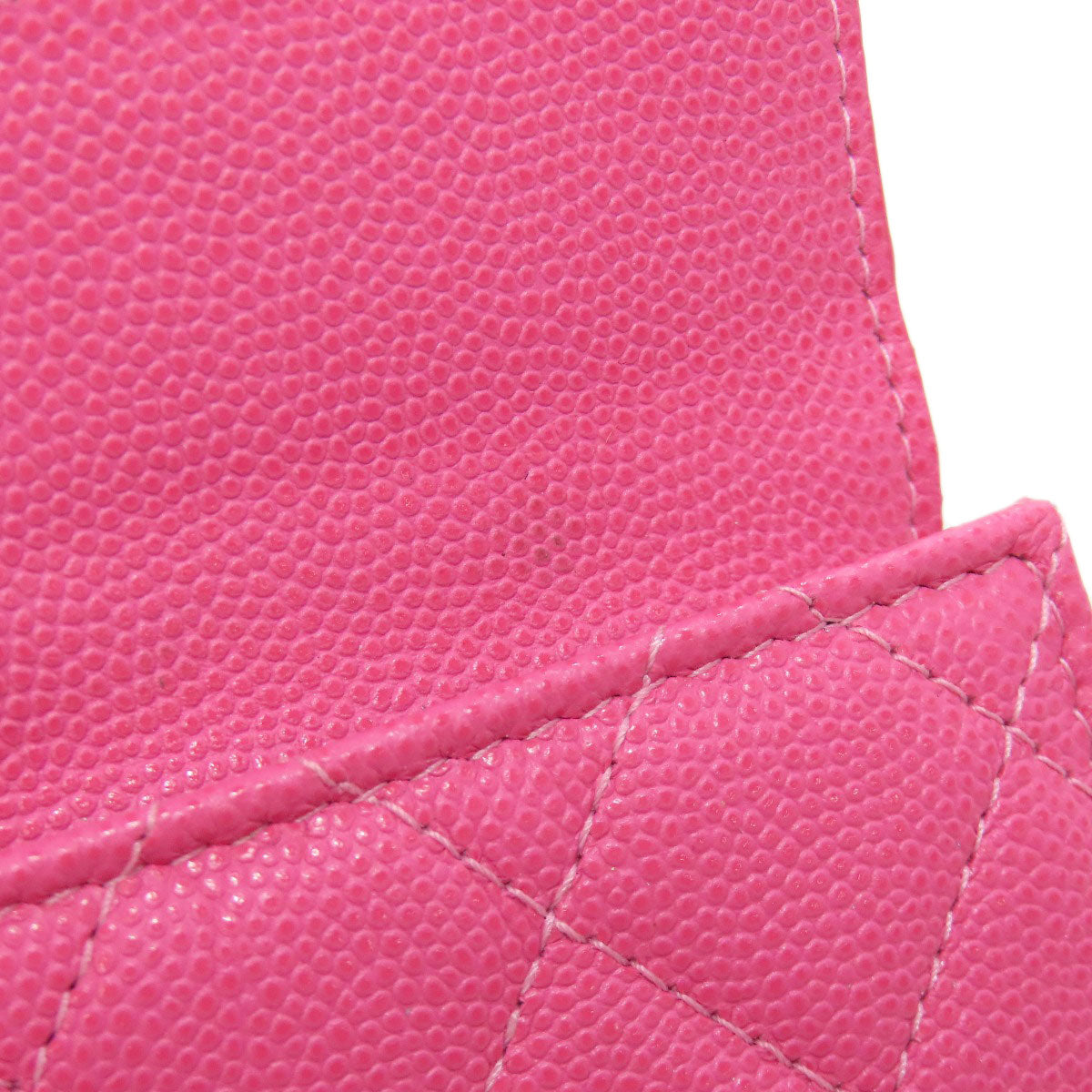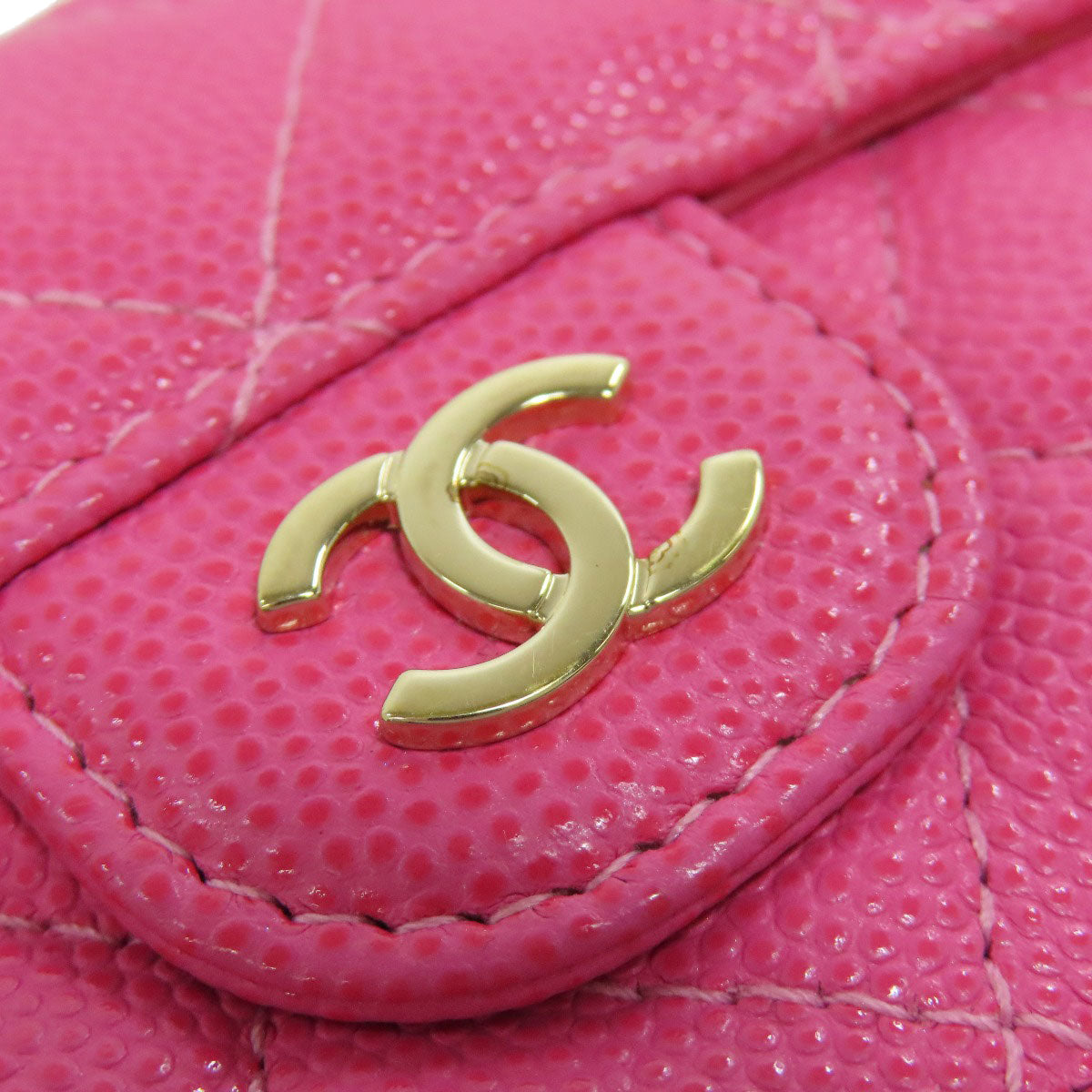 CHANEL Bifold Wallet Grained Calfskin Skin pink COCO Mark Gold Metal Tri-fold Wallet Women Used Authentic