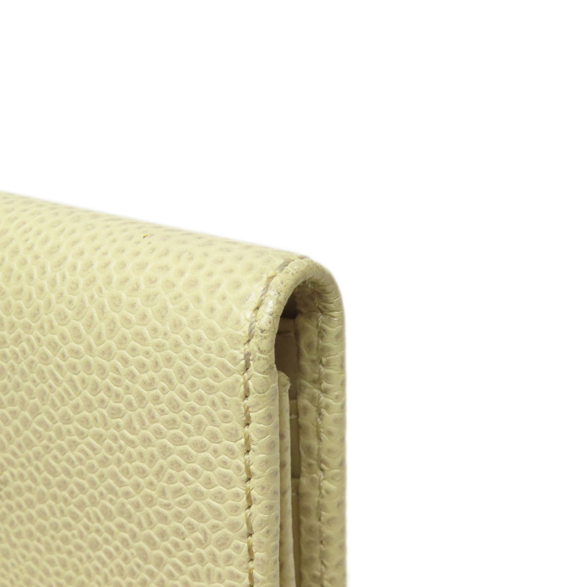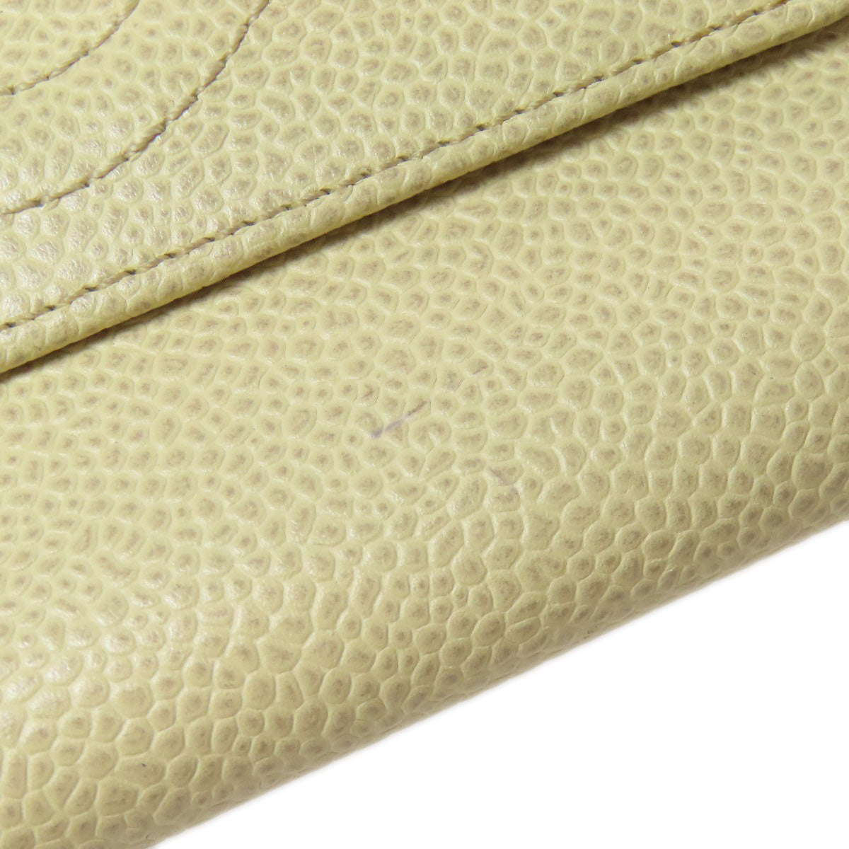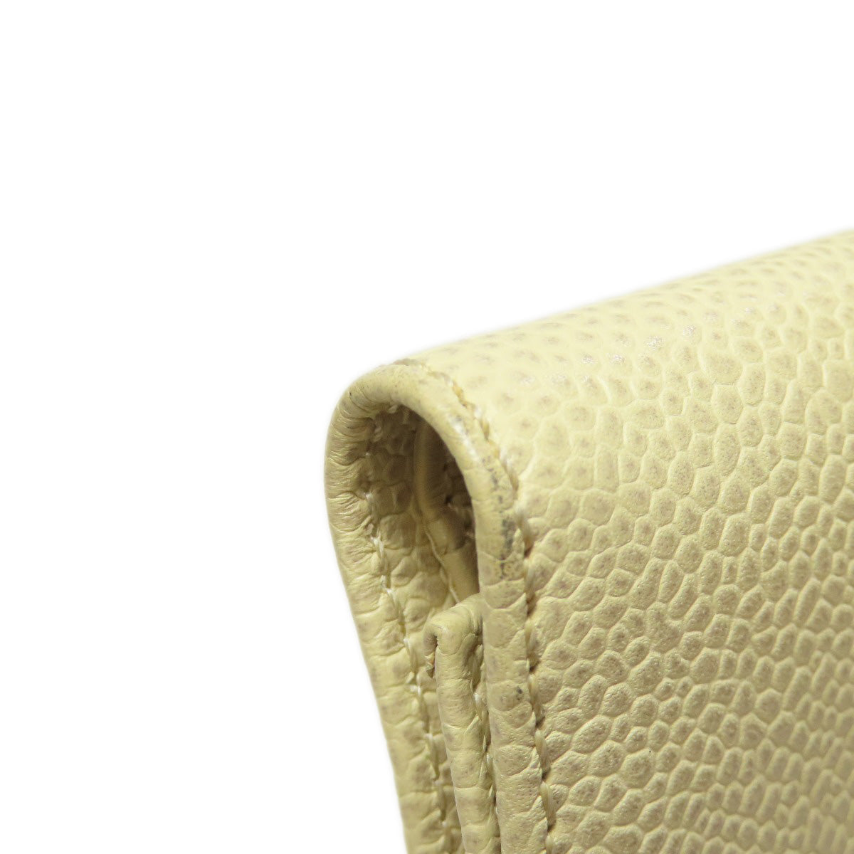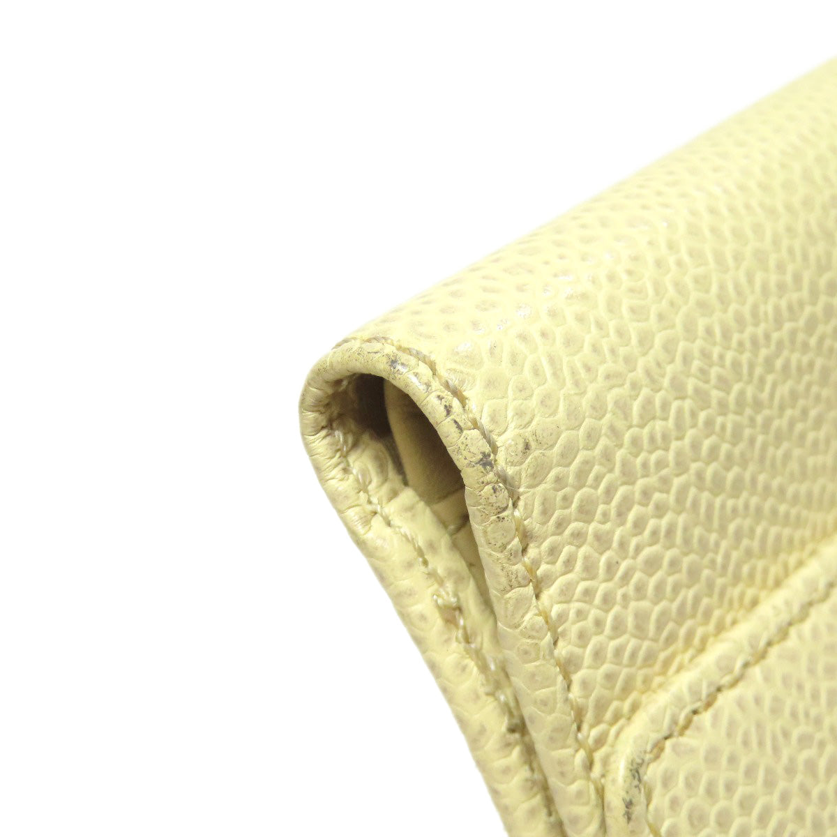 CHANEL Bifold Wallet Grained Calfskin Skin yellow COCO Mark Gold Metal Women Used Authentic