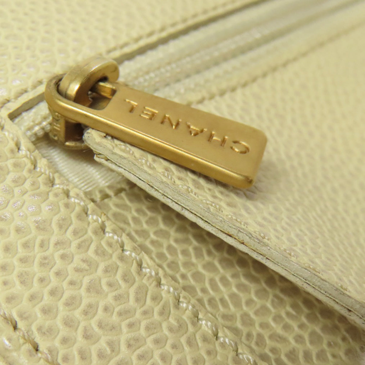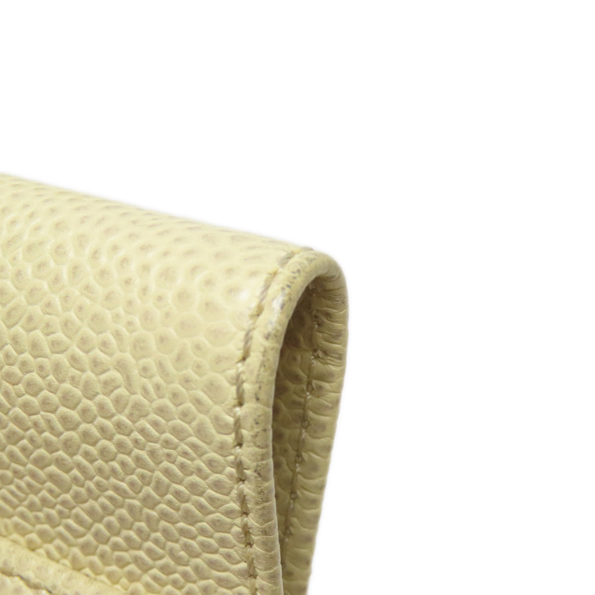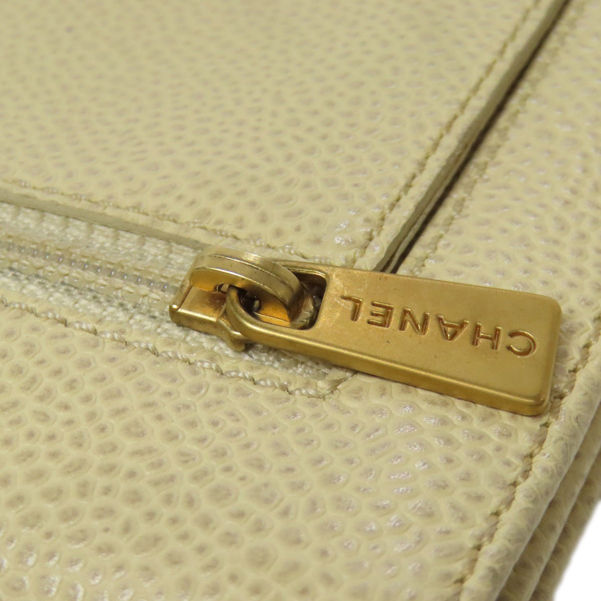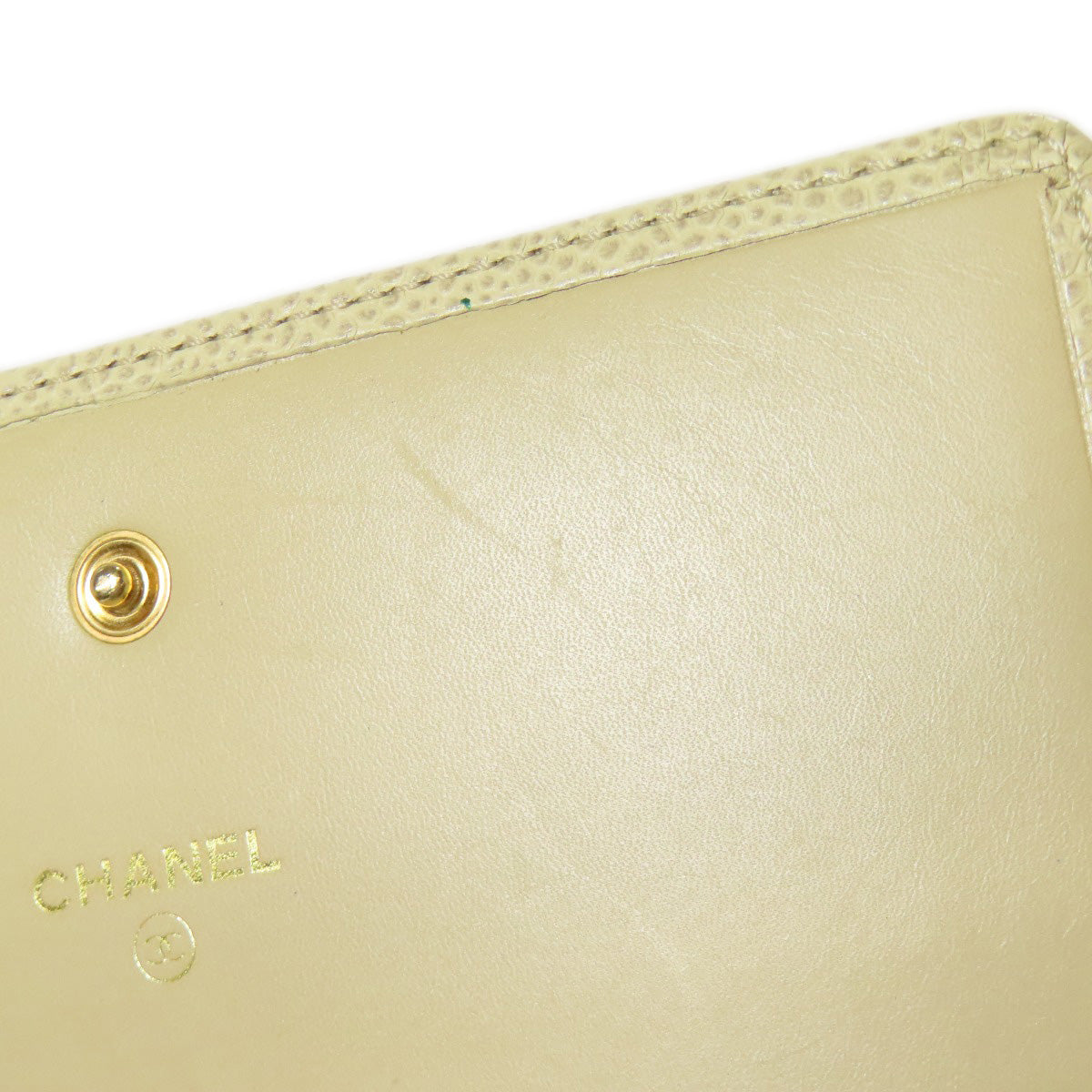 CHANEL Bifold Wallet Grained Calfskin Skin yellow COCO Mark Gold Metal Women Used Authentic