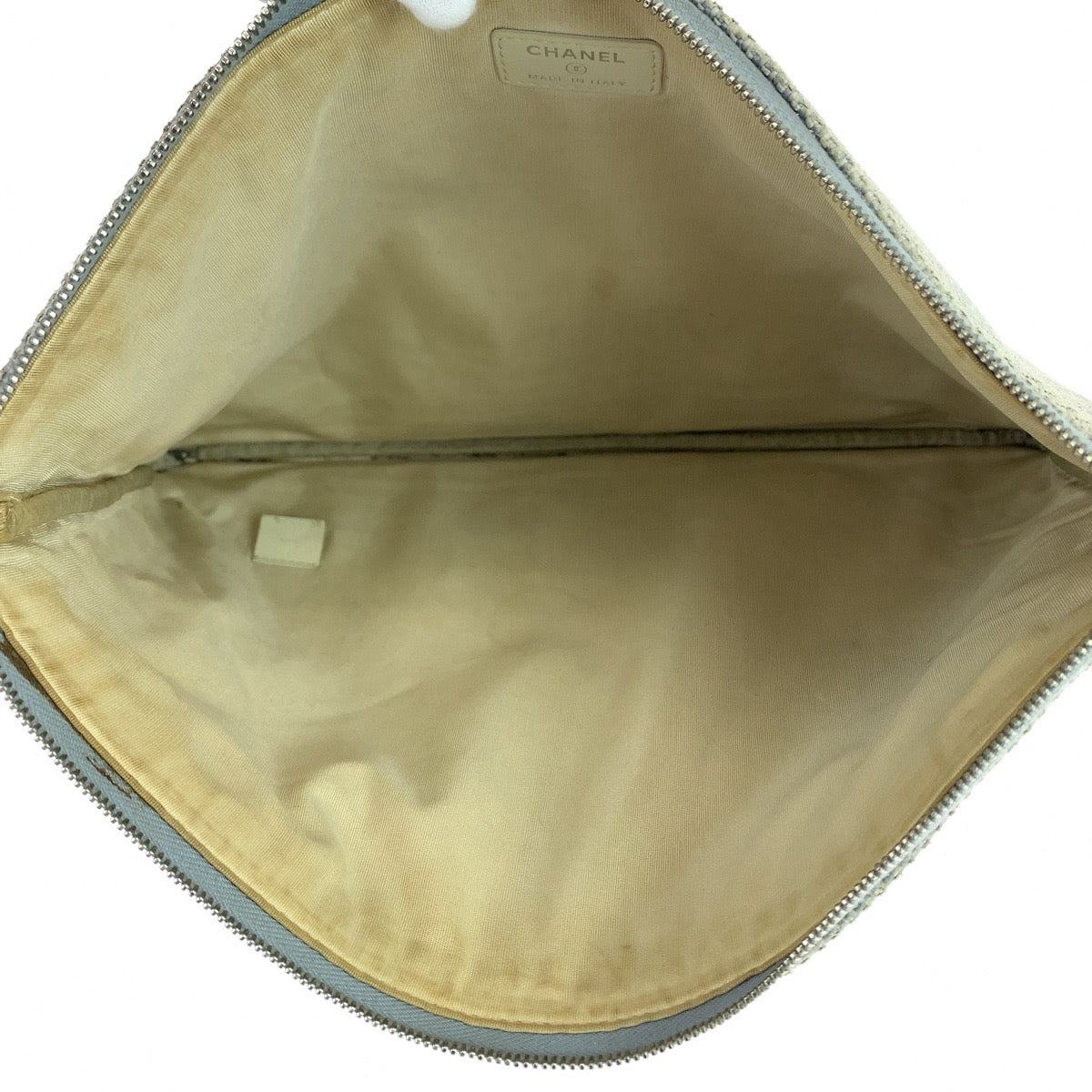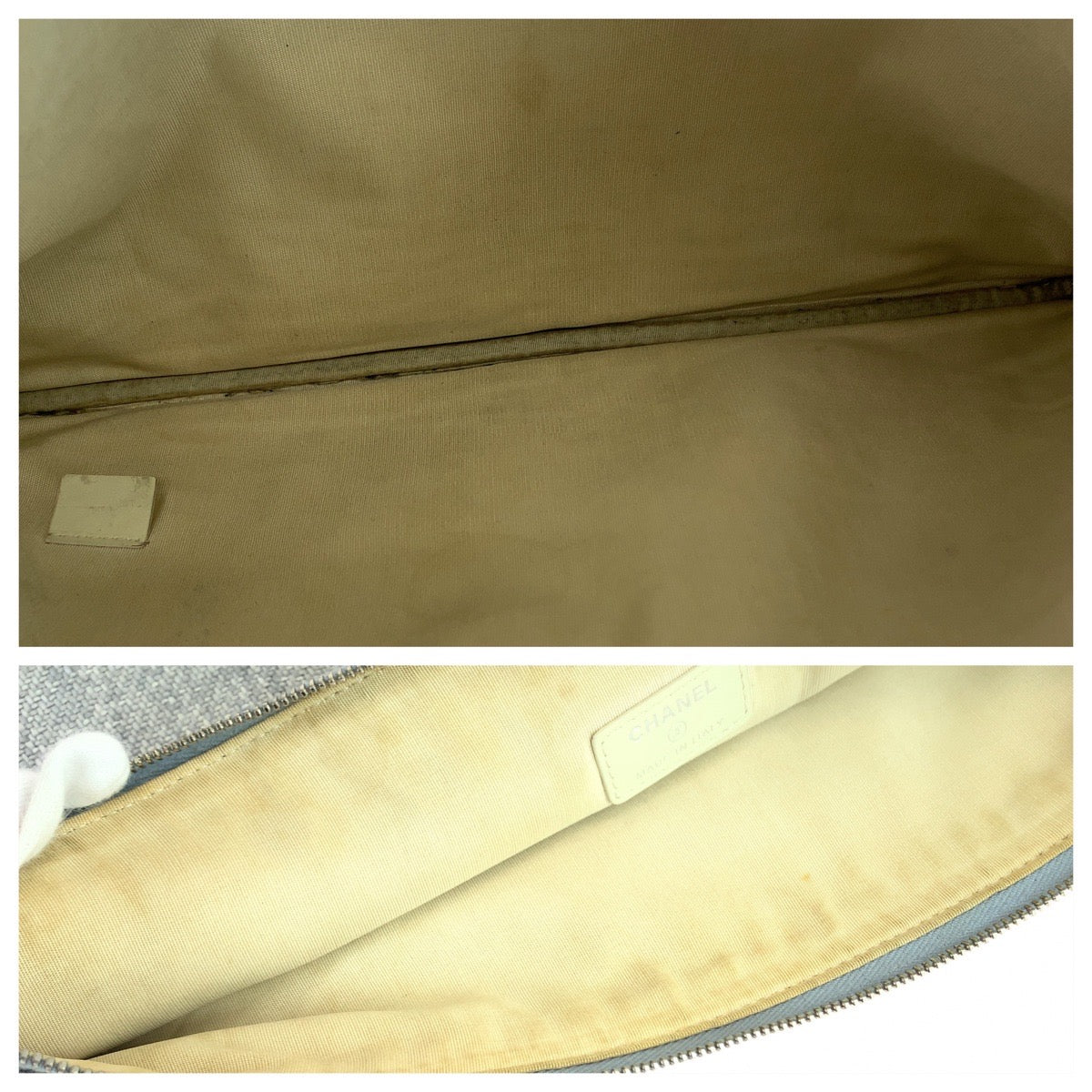 CHANEL Clutch bag canvas Grey SilverMetal Clutch bag business bag pouch Cruise line Deauville COCO Mark Women Used Authentic