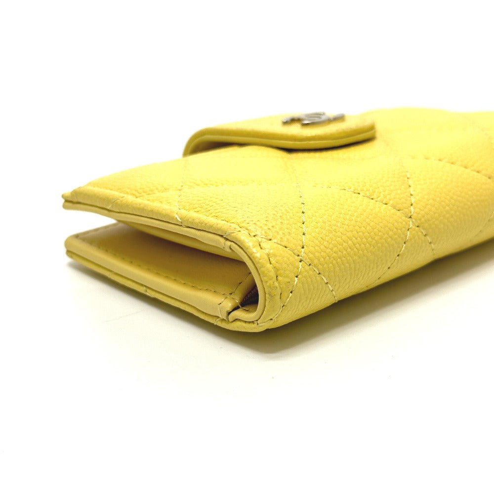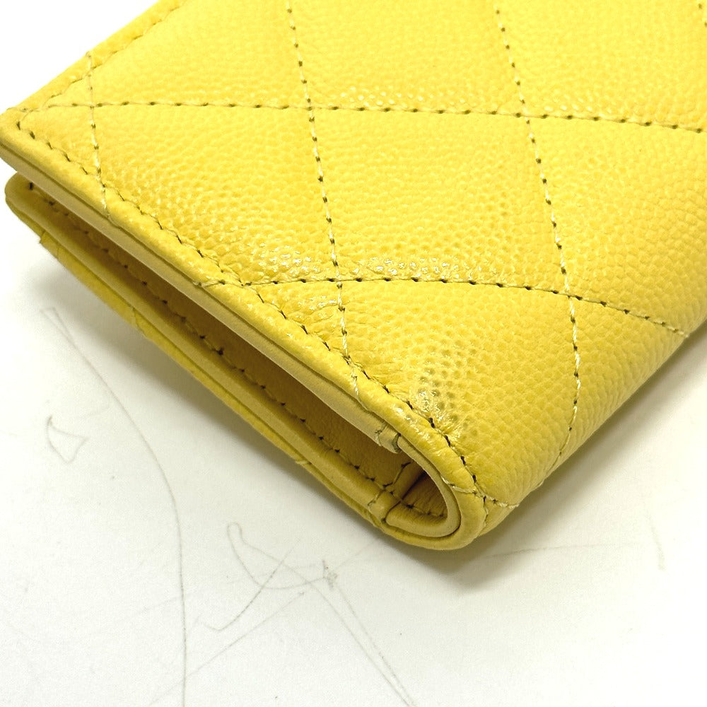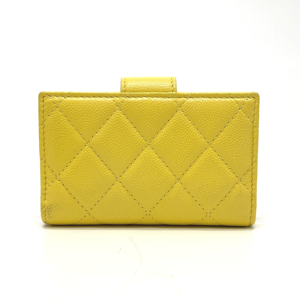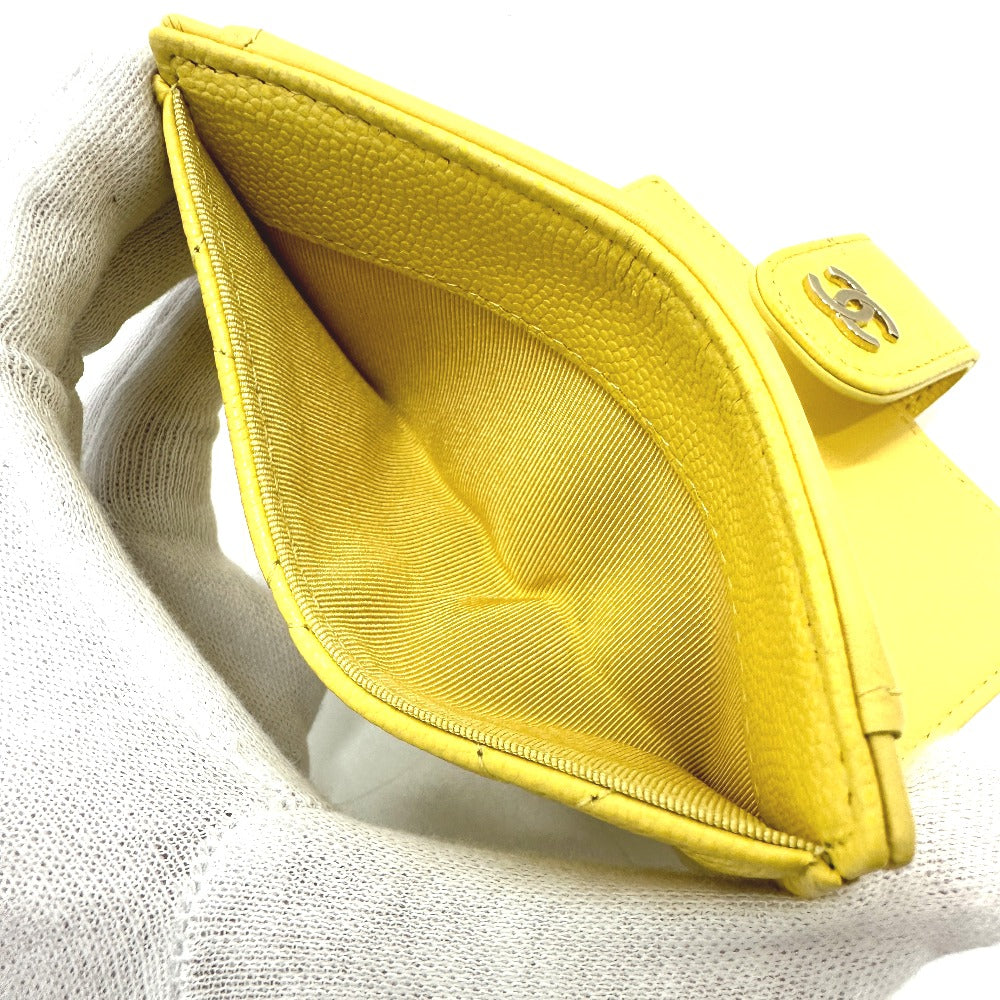 CHANEL Coin case AP1991 Caviar skin yellow CC COCO Mark classic small wallet Women Used Authentic