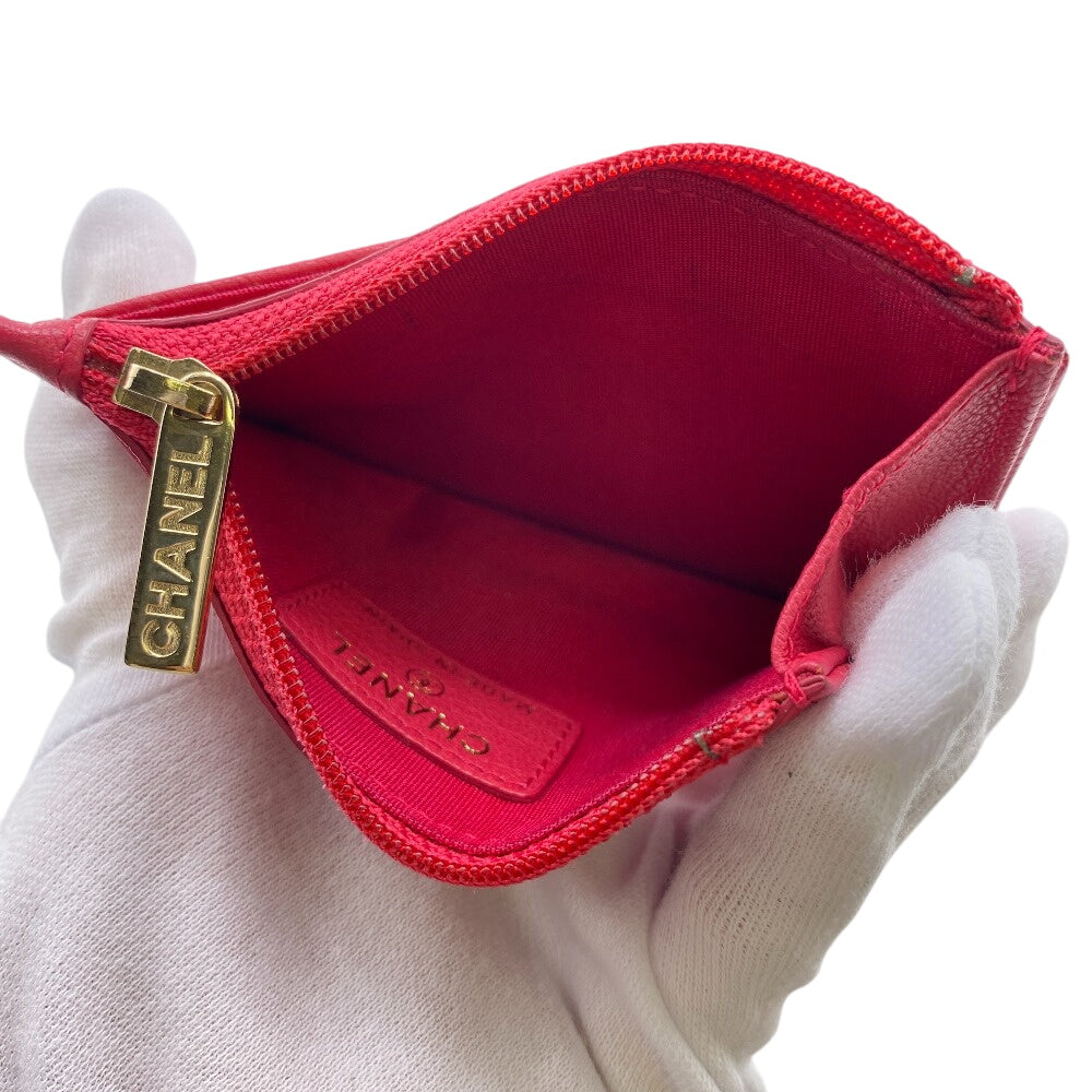 CHANEL Coin case leather pink Fragment case Card Case COCO Mark Women Used Authentic