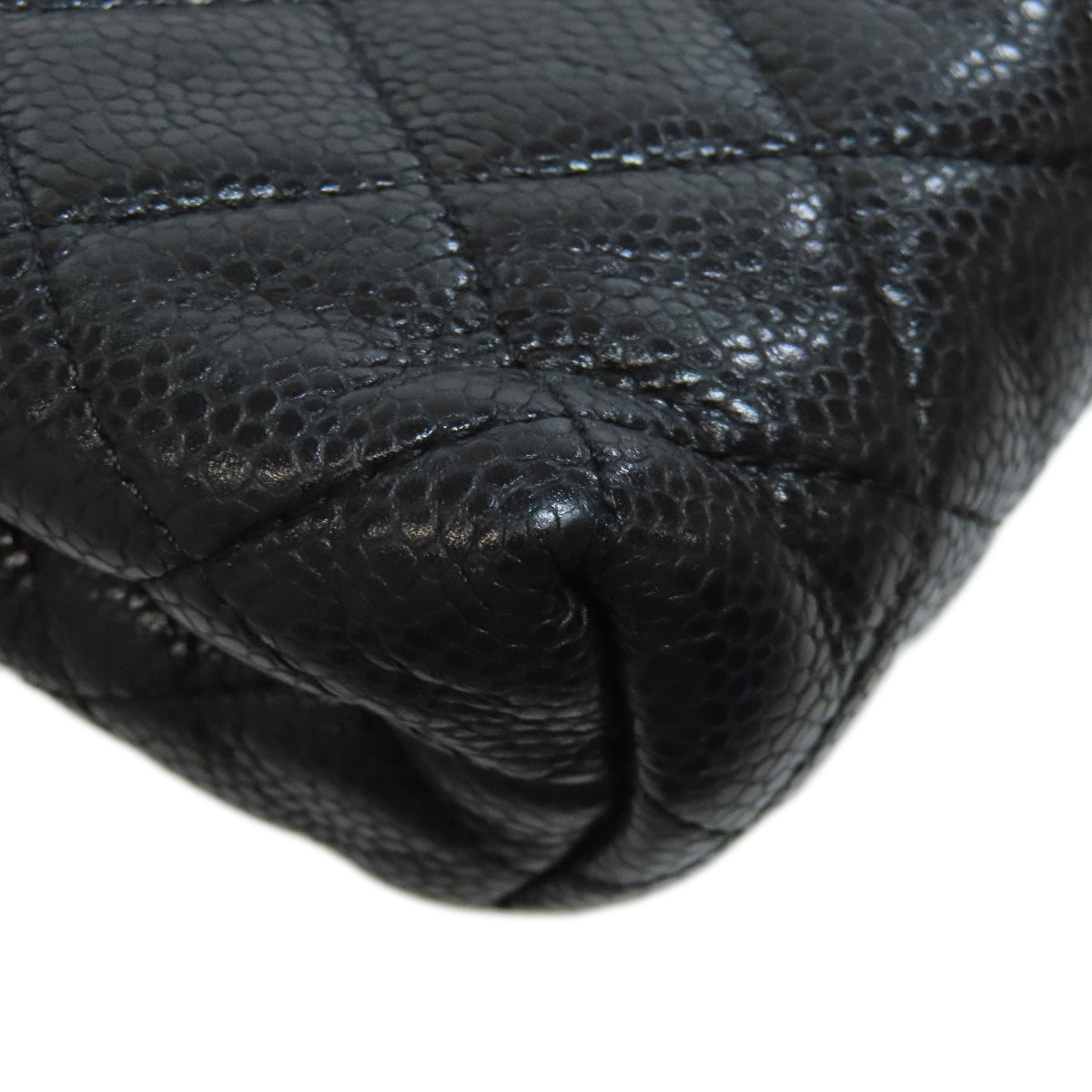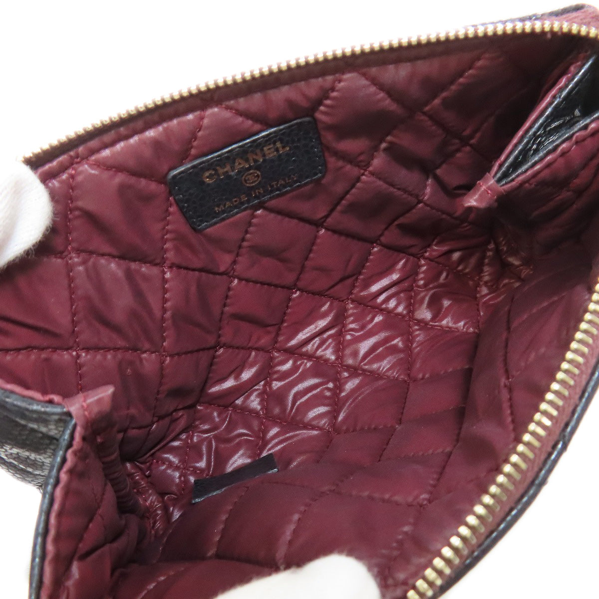 CHANEL Cosmetics Pouch Grained Calfskin Skin black Matelasse Gold Metal