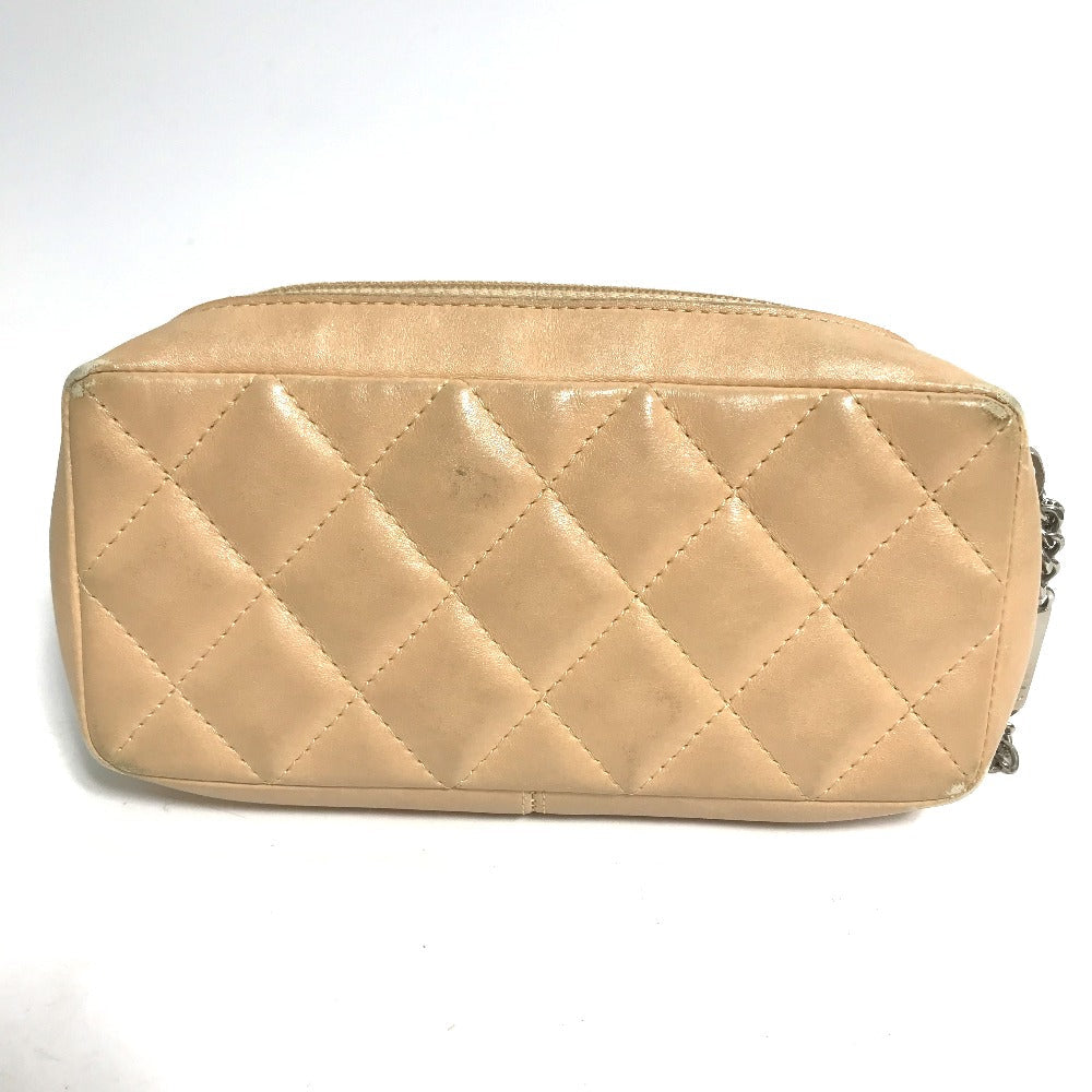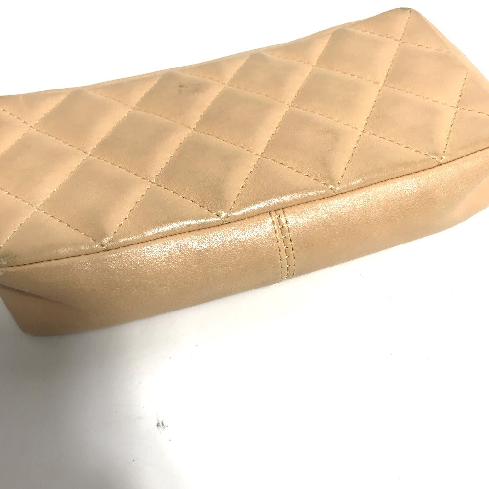 CHANEL Cosmetics Pouch leather beige Cambon line CC COCO Mark