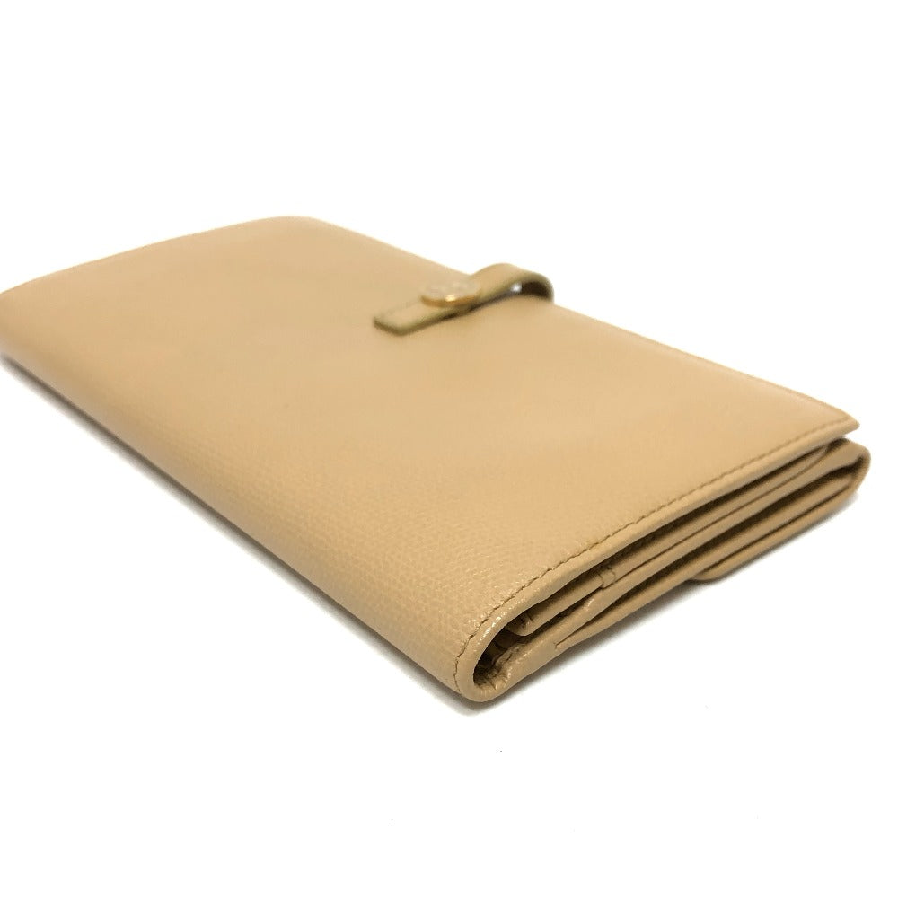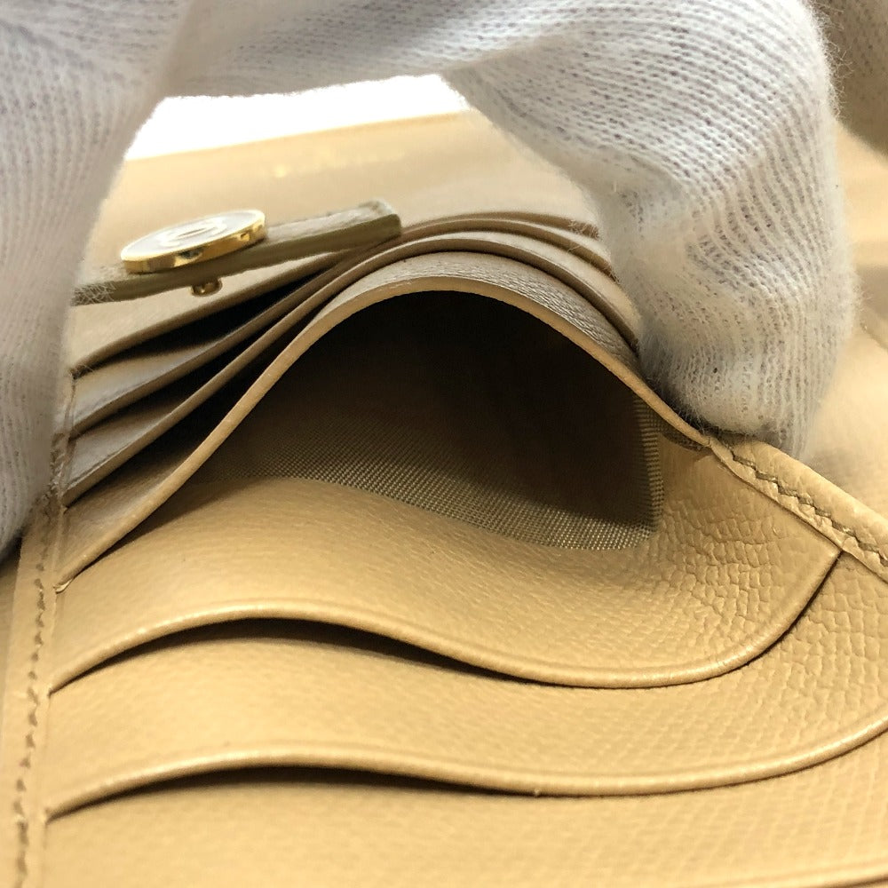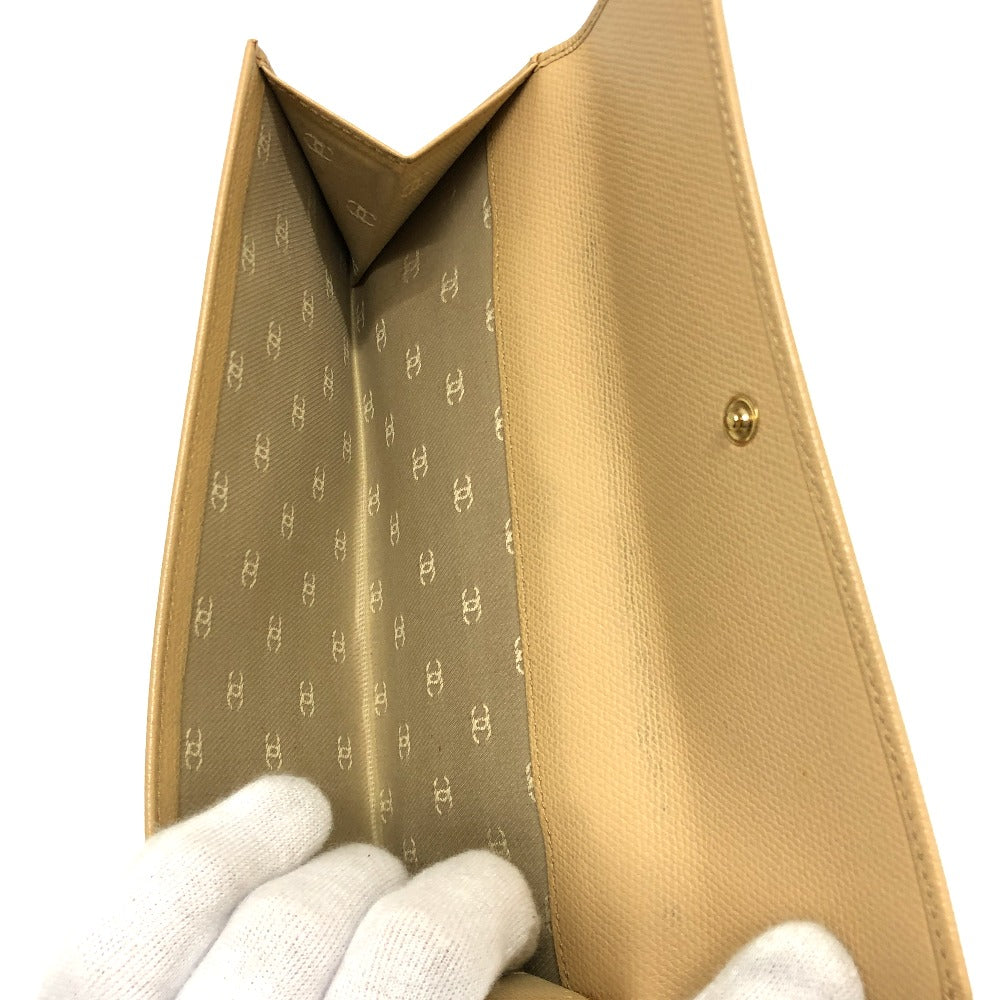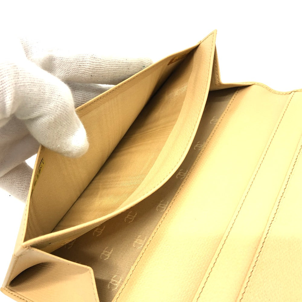 CHANEL Folded wallet leather beige COCO Button Women Used Authentic