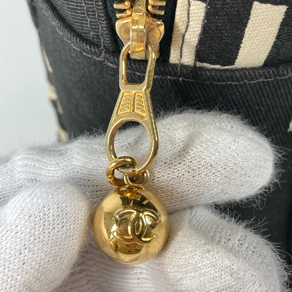 CHANEL Handbag canvas black All-over logo Women Used Authentic