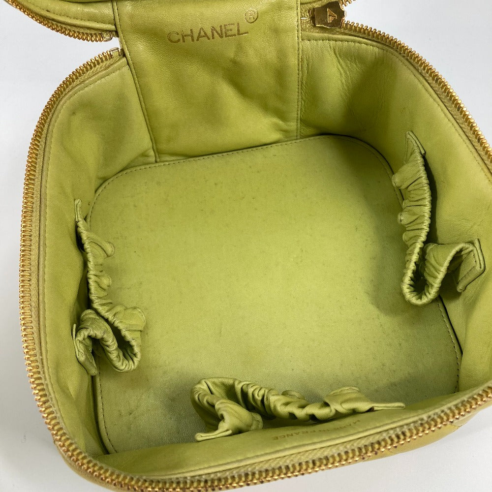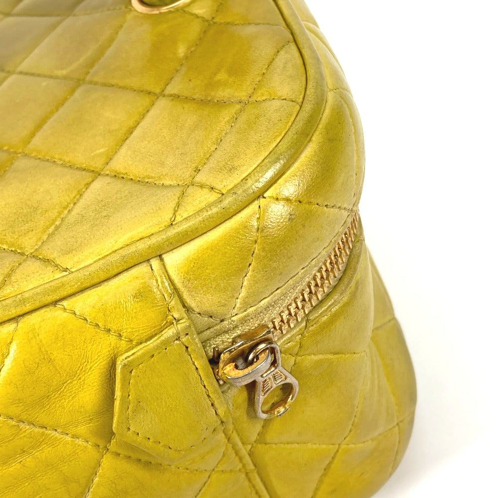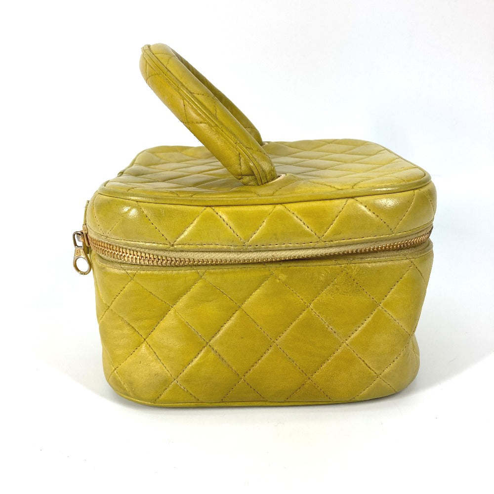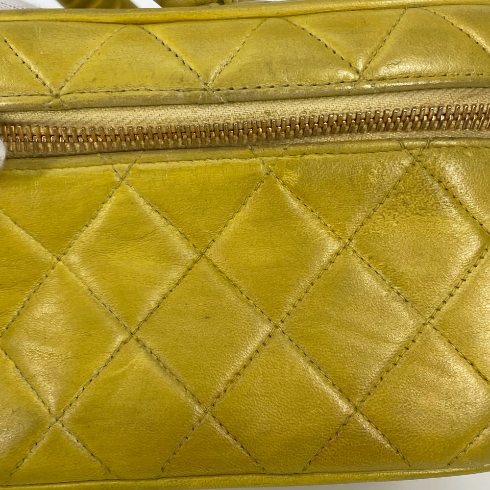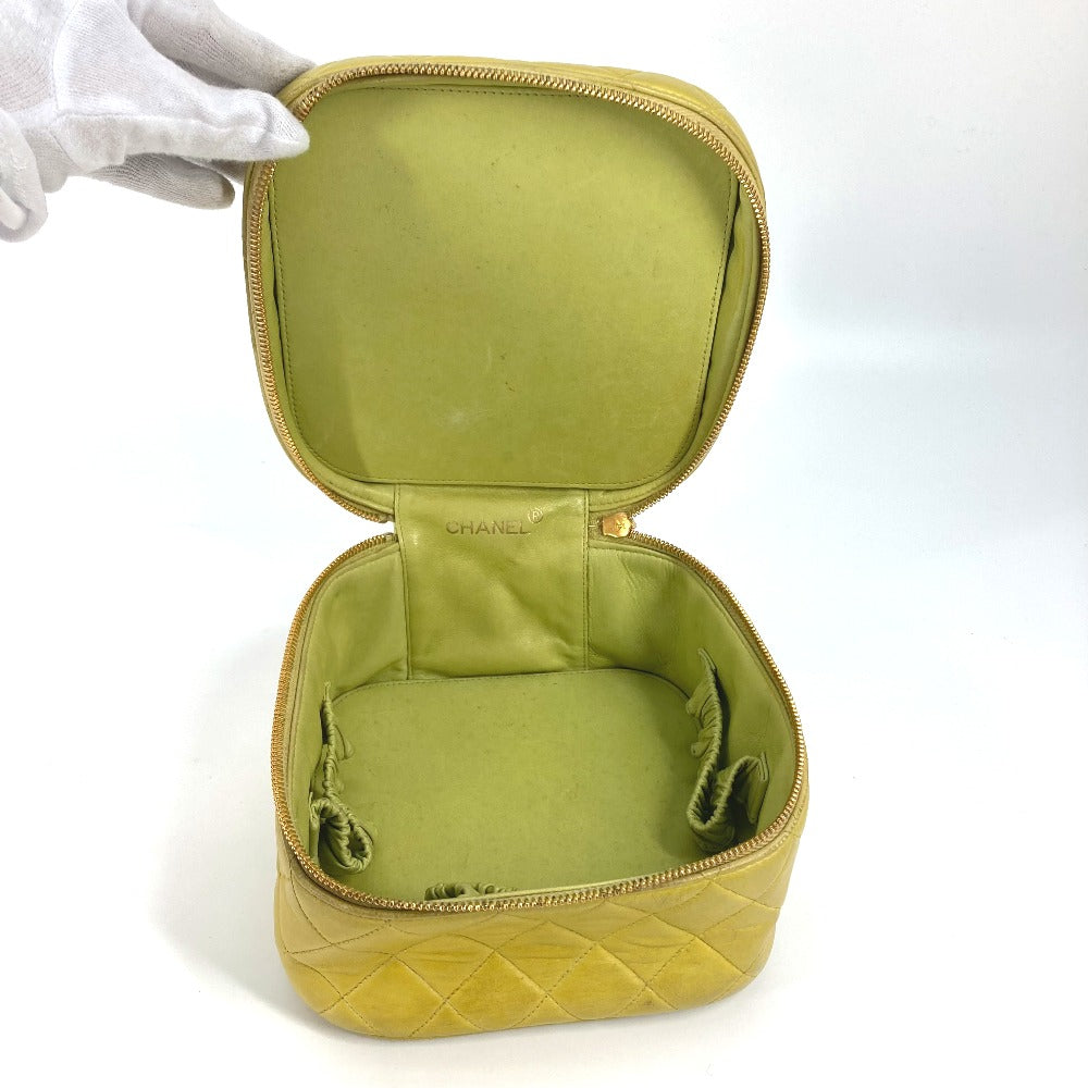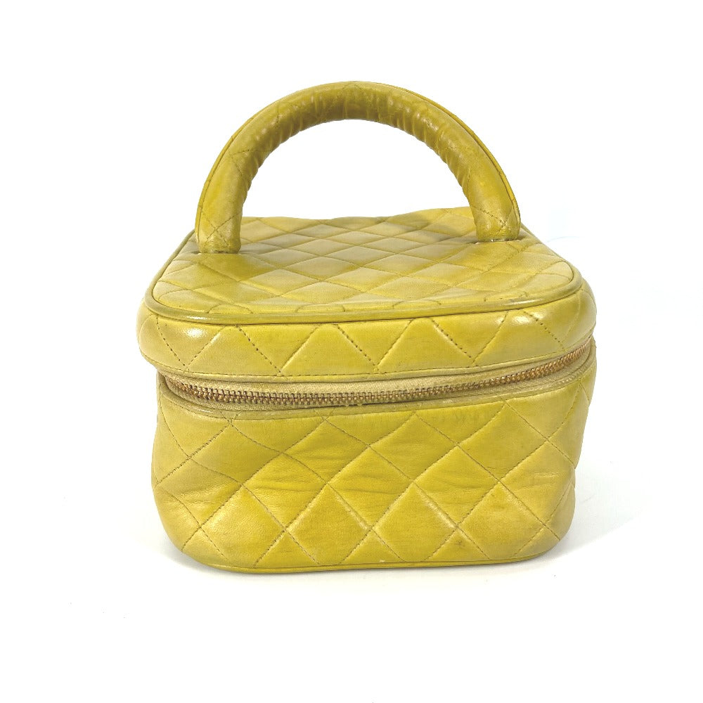 CHANEL Handbag leather Yellow type quilting Matrasse vanity bag Women Used Authentic