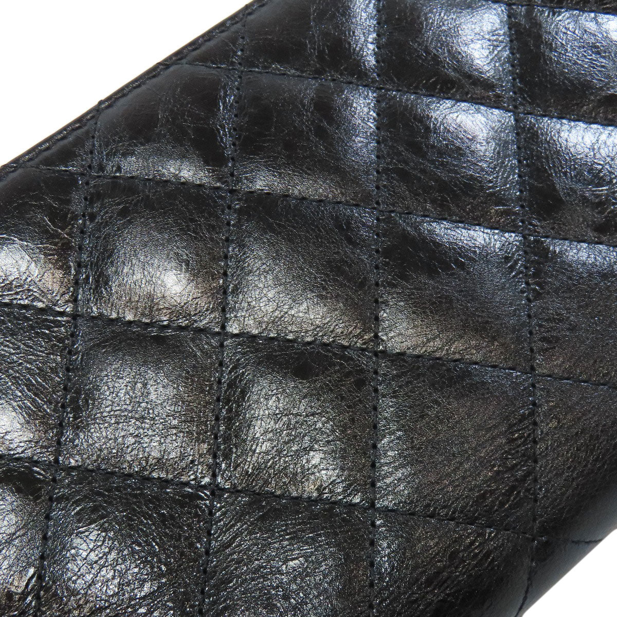CHANEL Long Wallet Purse Calfskin black 2.55 Matelasse SilverMetal