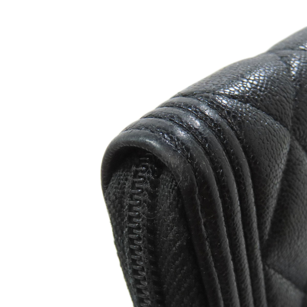 CHANEL Long Wallet Purse Calfskin black Boy chanel Women Used Authentic