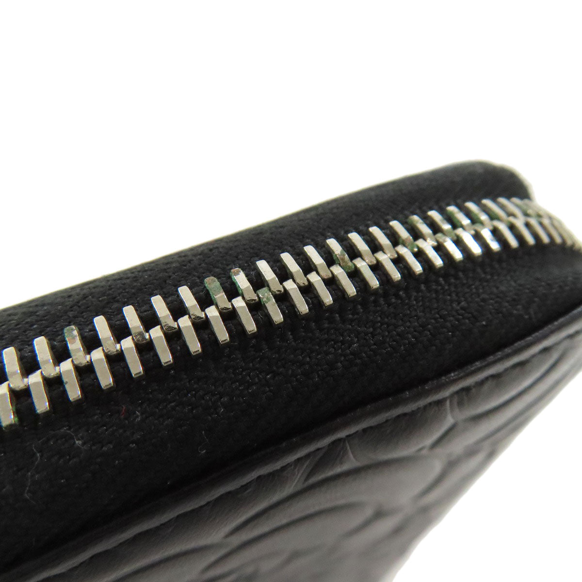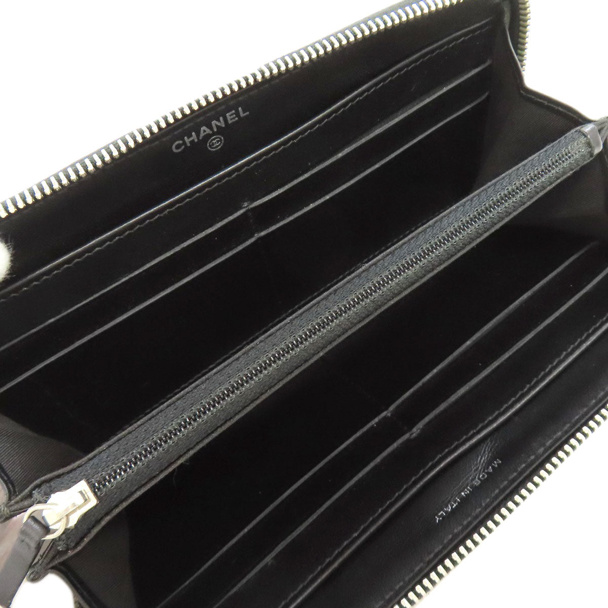 CHANEL Long Wallet Purse Calfskin black Camellia SilverMetal Women Used Authentic