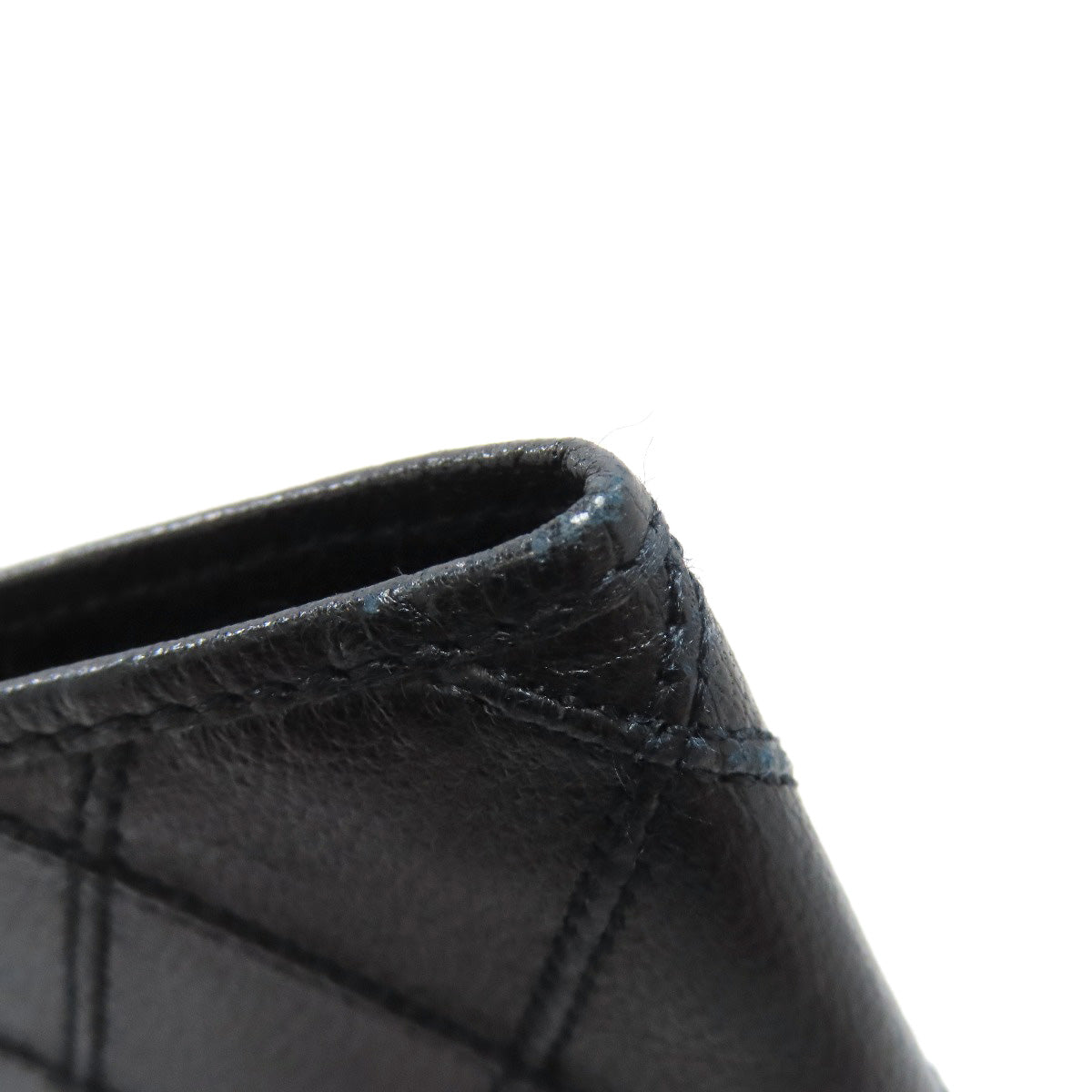 CHANEL Long Wallet Purse Calfskin black stitch Women Used Authentic