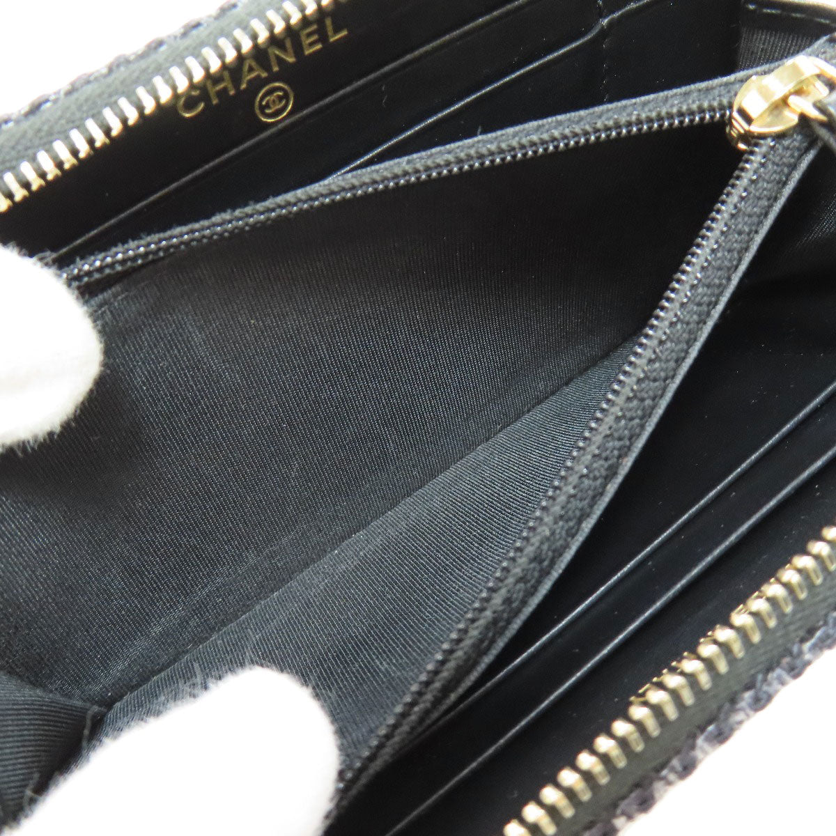 CHANEL Long Wallet Purse canvas Navy Deauville small zip wallet Women Used Authentic